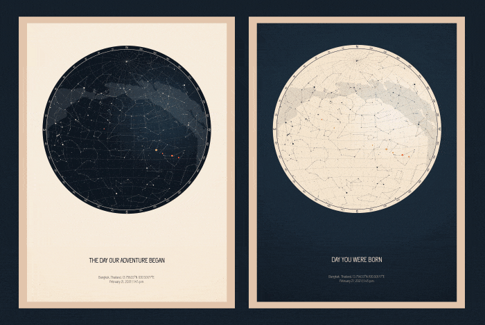 Ein Geschenk zu machen gibt dir die Chance, jemandem das Gefühl zu geben, etwas Besonderes zu sein, eine Zeit, um zu zeigen, dass du in einem wichtigen Moment in seinem Leben an ihn gedacht hast. Deshalb gewinnt beim Schenken jedes Mal die Originalität. Personalisierte Poster und Leinwanddrucke von Positive Prints werden auf Bestellung für alle besonderen Menschen in deinem Leben maßgefertigt. Sie spiegeln einen für sie einzigartigen Moment wider, sei es eine Sternenkarte oder ein Mondphasenplakat der Nacht, in der du oder dein Lieblingsmensch geboren wurde. Oder greife auf eine "Wo wir uns trafen"-Karte zurpck, um euer erstes Date mit deinem Liebsten hervorzuheben. Jeder Druck ist wirklich ein Unikat, um zu zeigen, dass du besondere Aufmerksamkeit und Sorgfalt in das besondere Geschenk reingesteckt hast.