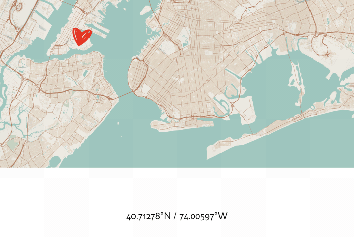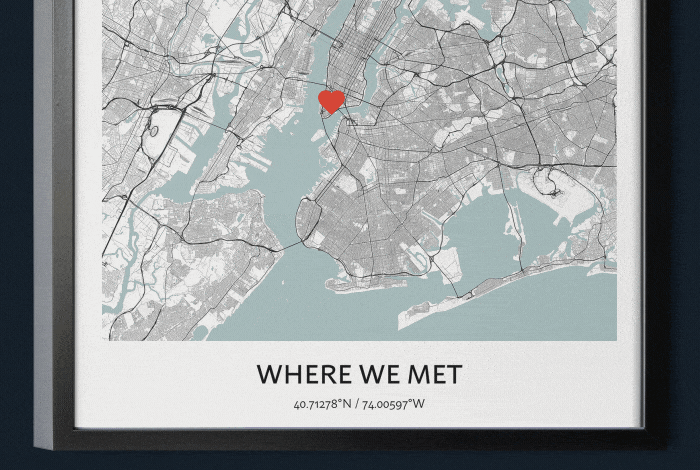 Personalisierte Poster und Leinwanddrucke erwecken das alte Sprichwort „Wenn Wände sprechen könnten!“ zum Leben. Jeder Druck erzählt ein Stück deiner Geschichte. Vielleicht erzählt eine Karte die Geschichte als du deinen Ehepartner kennengelernt hast, ihr euch verlobt und dann geheiratet habt. Oder vielleicht ist es ein benutzerdefiniertes Stadtplan-Poster eines Ortes, an den du früher gelebt oder gerne gereist bist. Jeder hat eine Geschichte, die es wert ist, geteilt zu werden, weshalb benutzerdefinierte Wandbilder ein so durchdachtes Geschenk für jede Person oder jeden Anlass sind. Darüber hinaus lohnt es sich, an Kunstwerken wie diesem festzuhalten. Sie werden zu sofortigen Erbstücken, die über Generationen weitergegeben werden können, während Ideinehre Kinder und Enkel die Familiengeschichte weiterführen.