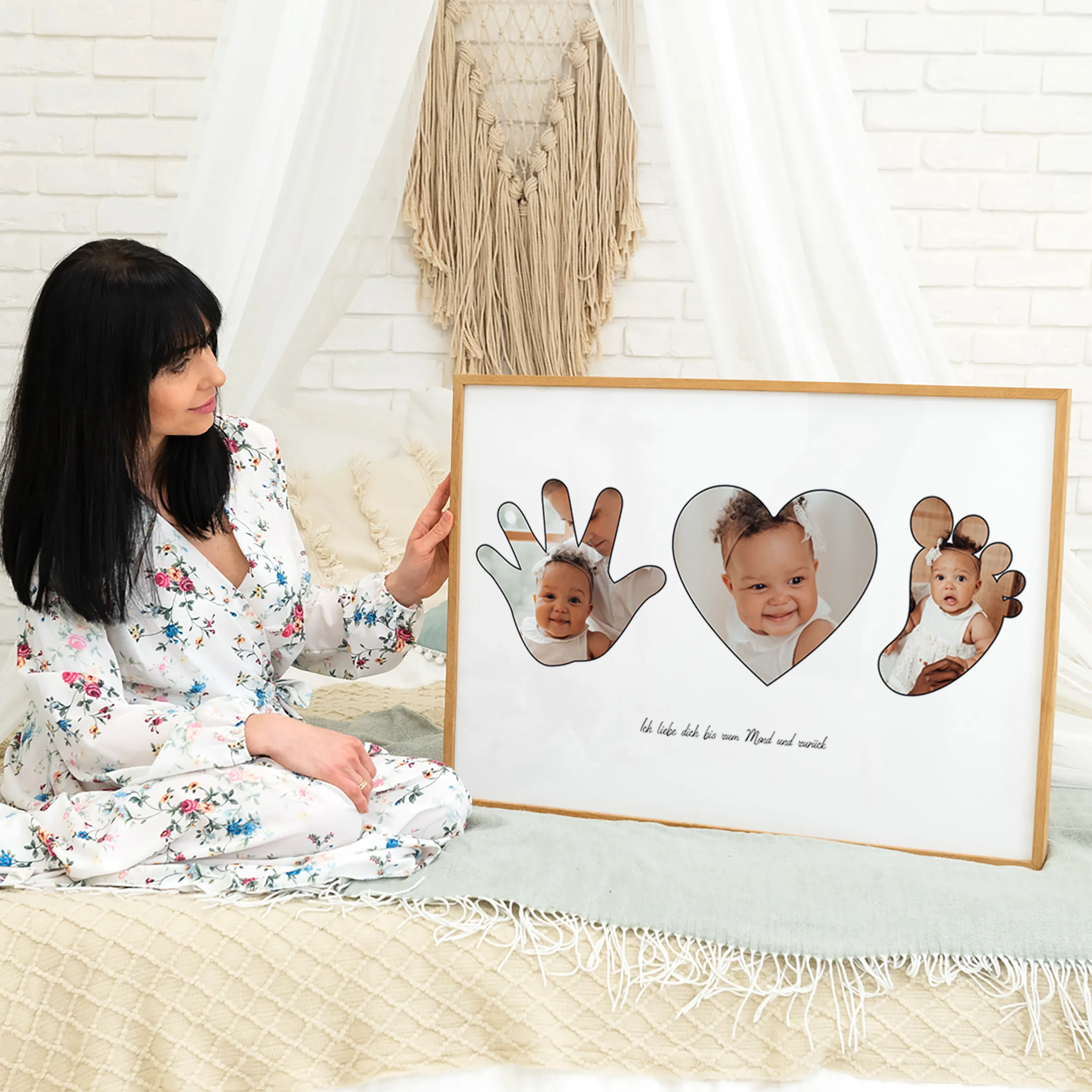 Suchst du nach einem bedeutungsvollen Geschenk für den ersten, zweiten oder einen bevorstehenden Geburtstag eines Babys? Dann bist du bei der Baby-Fotocollage genau richtig. Diese atemberaubende Kreation wird nicht nur die Aufmerksamkeit aller auf sich ziehen, sondern auch einen Hauch von Wärme und Individualität in jedes Kinderzimmer bringen. Im Gegensatz zu gewöhnlichen, im Laden gekauften Geschenken ist unsere Collage ein einzigartiges und schönes Geschenk, das sich von den anderen abhebt. Bewahre diese besonderen Erinnerungen und feiere die Freude der Kindheit mit der Baby-Fotocollage.