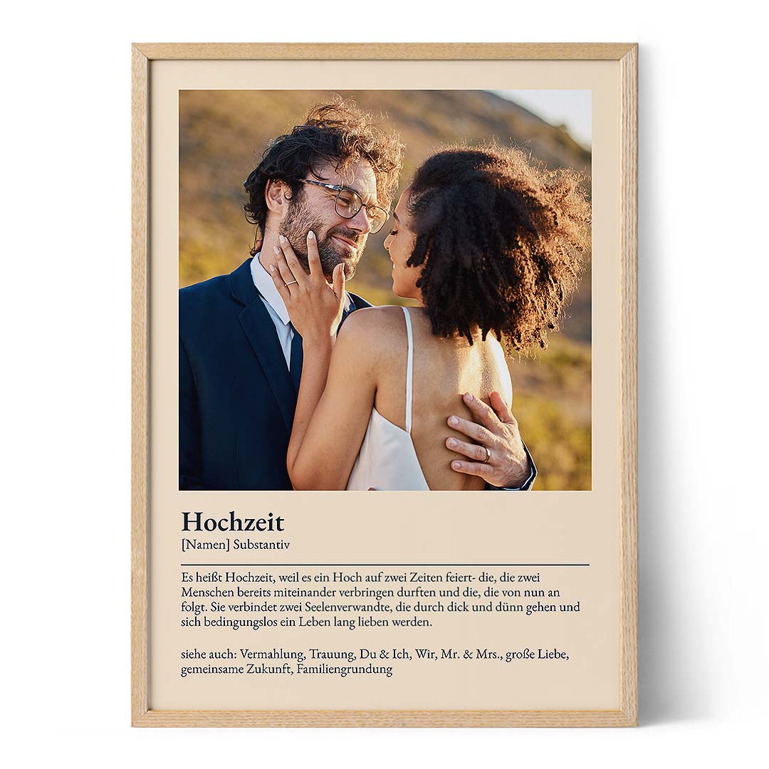 Suchst du nach einer einzigartigen und bedeutungsvollen Art, eine Hochzeit zu feiern? Unser Poster mit der Definition „Ehe“ ist das perfekte personalisierte Geschenk. Halte die Essenz dieser schönen Verpflichtung mit einer individuellen Definition und einem Foto fest, das zu Herzen geht.