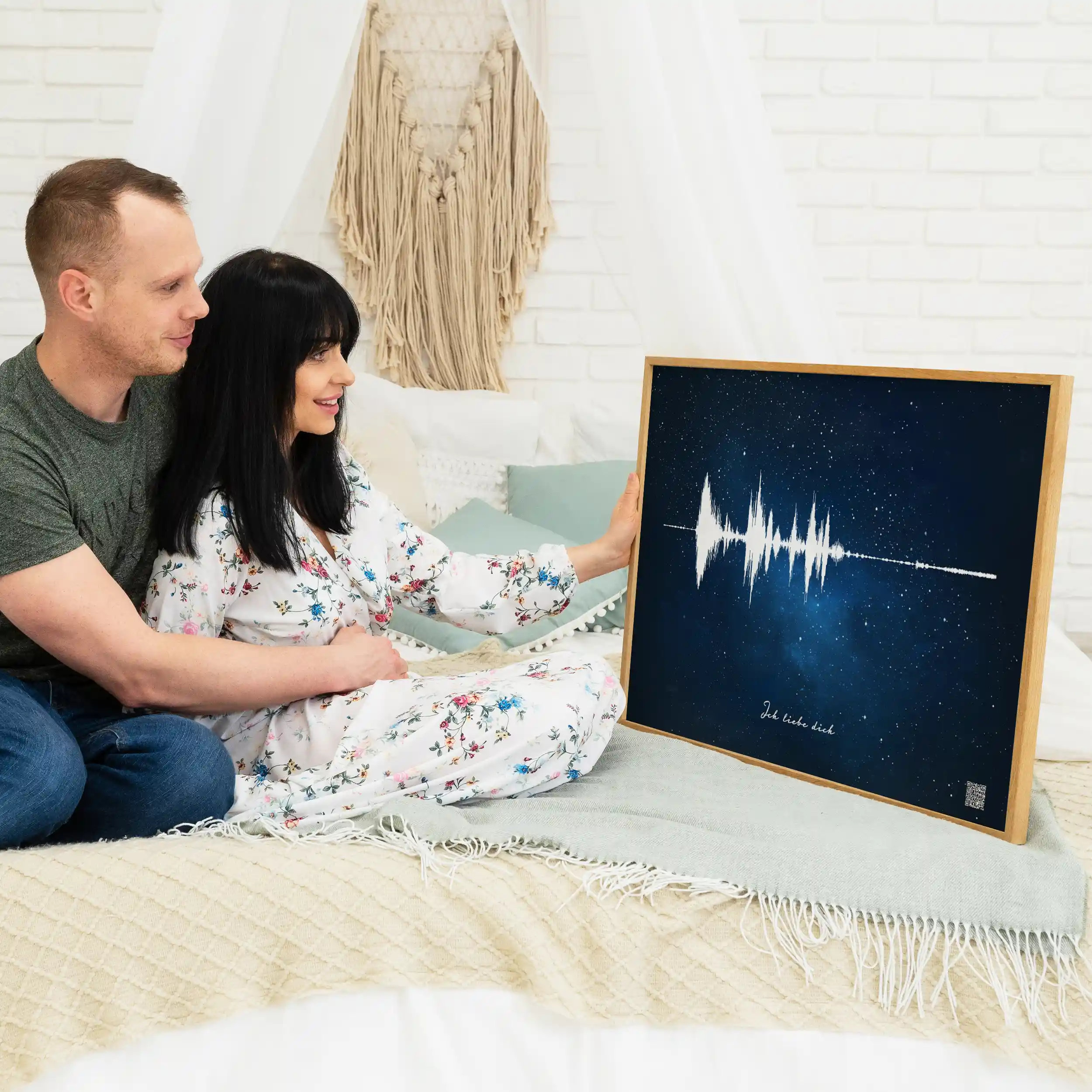 Wir stellen vor: Schallwellen-Kunst mit QR-Code zur Sprachaufzeichnung – als ein personalisiertes Geschenk zur Sprachaufzeichnung, das dich mit Sicherheit beeindrucken wird! Mit diesem innovativen und einzigartigen Geschenk kannst du deine eigene Nachricht aufzeichnen und beim Scannen des QR-Codes abspielen lassen. Der Empfänger kann sich dann immer wieder an deiner besonderen Botschaft erfreuen.