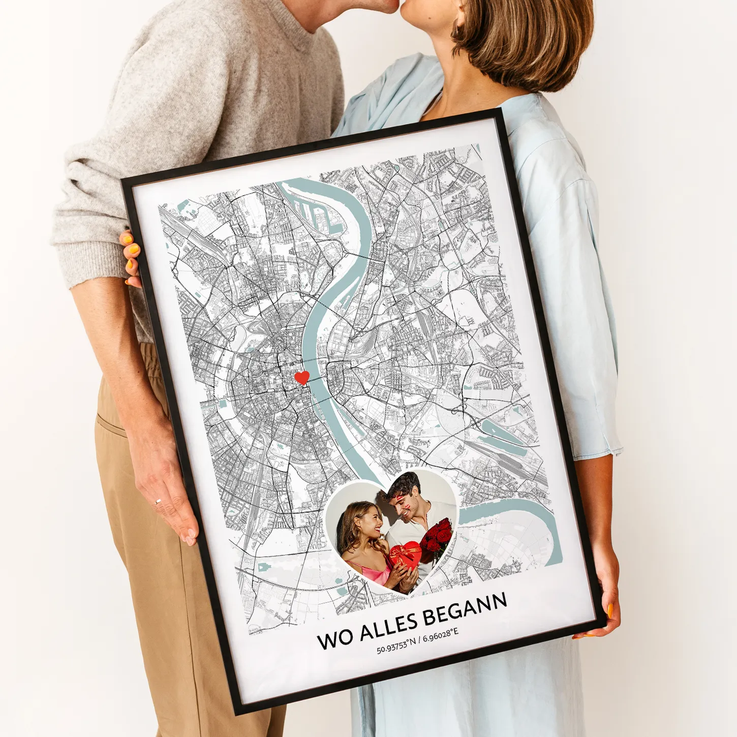 Jede Liebesgeschichte hat einen Anfang. Es kann sich um ein unerwartetes Ereignis handeln, beispielsweise um ein zufälliges Treffen bei einem Konzert oder einer Veranstaltung. Oder es könnte ein geplanter Anlass sein, etwa ein erstes Date oder die Vorstellung eines Freundes. Der Ort, an dem alles begann, wird immer von Bedeutung sein, und ein individueller Kartendruck wird dir dabei helfen, sich für den Rest deines Lebens an diesen magischen Moment zu erinnern.