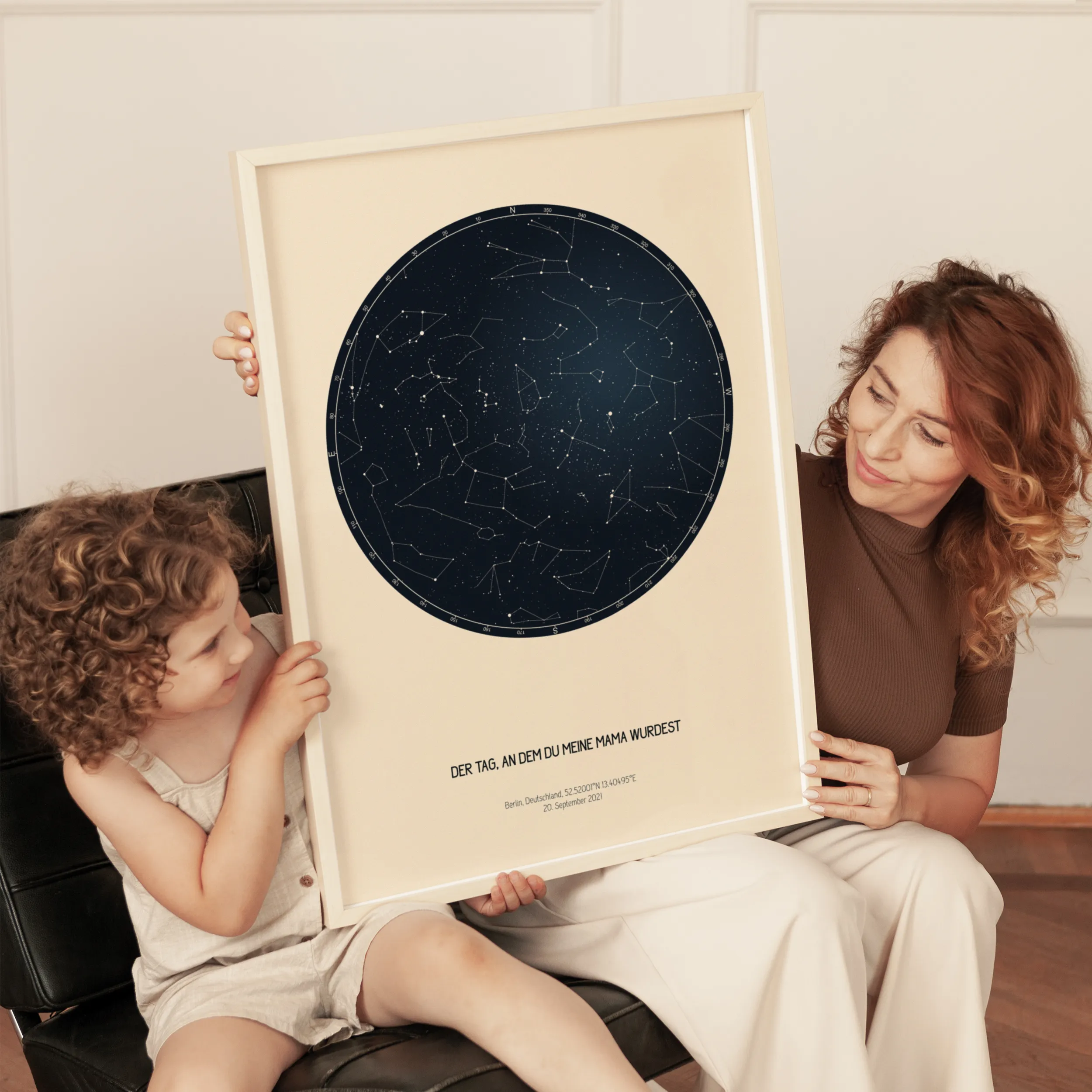 Mit unseren benutzerdefinierten Sternenkartengeschenken stellen wir den Nachthimmel so nach, wie er aussah, als du die Welt betreten hast. Der Tag, an dem deine Mutter deine Mutter wurde, war wirklich einer der glücklichsten Tage ihres Lebens und diese Karte des Nachthimmels ist eine schöne Möglichkeit, diesen Tag für immer aufzubewahren.
