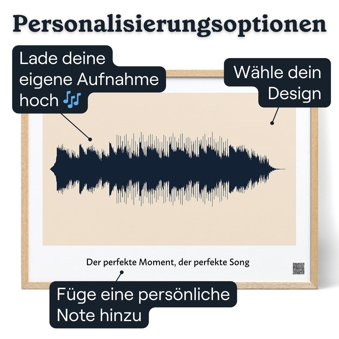 Maßgeschneiderte Kunst hört sich wie ein zeitraubendes und teures Geschenk an, ist aber tatsächlich einfacher, als in ein Geschäft zu gehen und etwas von der Stange zu kaufen. Bei Positive Prints haben wir die Schallwellentechnologie in unsere einfachen DIY-Prozesse integriert. Ähnlich wie bei unseren anderen Angeboten kannst du in nur drei kurzen Schritten einen individuellen Schallwellen-Druck erstellen.