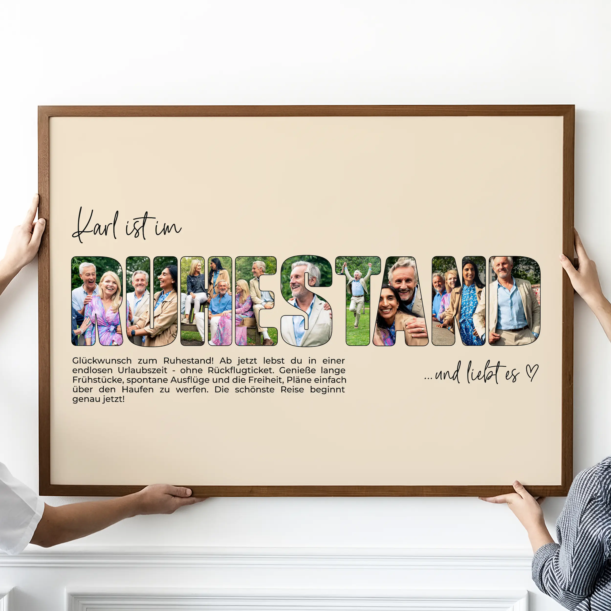 Eine personalisierte Fotocollage zur Feier des wohlverdienten Ruhestands – voller Erinnerungen, die die Reise zu etwas Besonderem machten