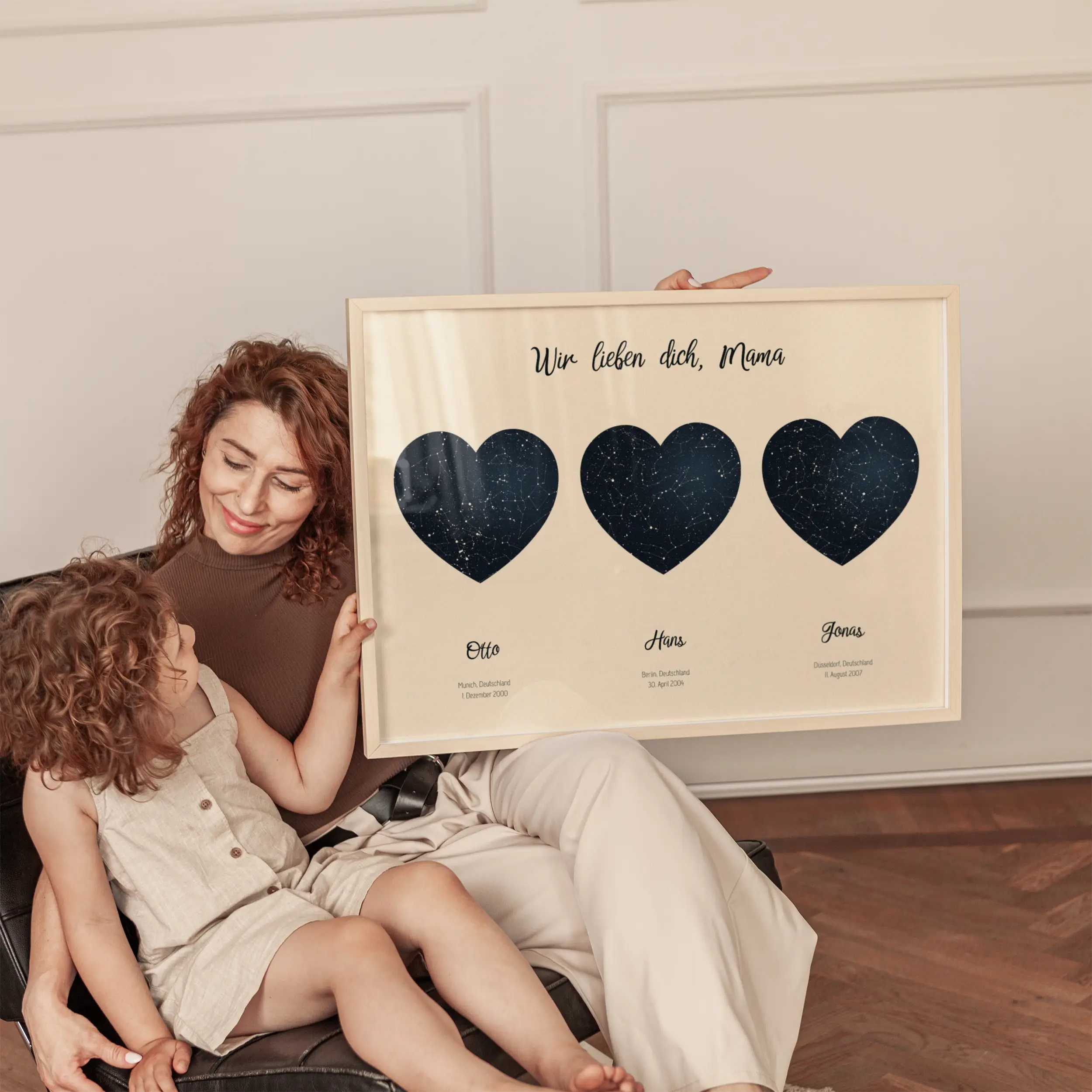 Mit drei atemberaubenden Sternenkarten auf einem einzigen Poster ist dieses Geschenk eine perfekte Darstellung des Nachthimmels von dem Tag an, an dem du und deine Geschwister geboren wurden. Du kannst sogar andere wichtige Momente aus dem Leben deiner Mutter hinzufügen. Die Möglichkeiten sind wirklich endlos!