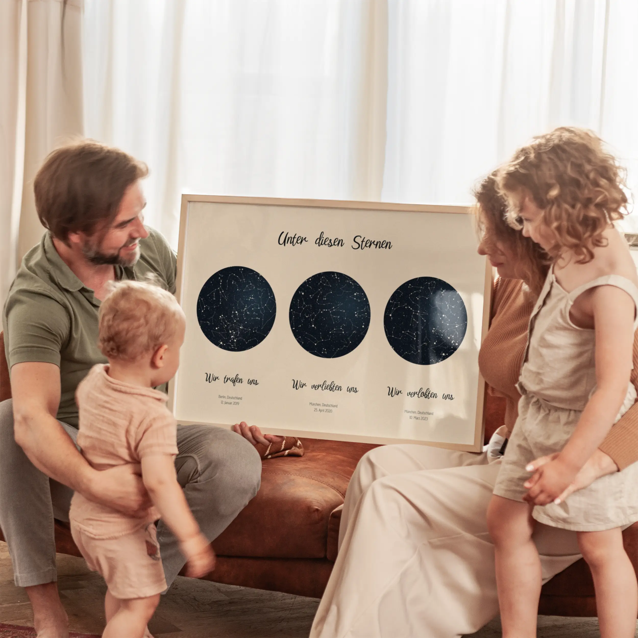 Hinterlasse einen bleibenden Eindruck mit unserem personalisierten Dreifach-Sternenkarten-Geschenk – perfekt für Jubiläen, Hochzeiten oder Geburtstage! Mache dich bereit, einen besonderen Menschen aus deinem Leben mit diesem wunderschönen Kunstwerk zu überraschen. Lese weiter und finde heraus, warum dies ein Geschenk genau dieses sein wird, an das sich du oder der Beschenkte jahrelang erinnern werdet.