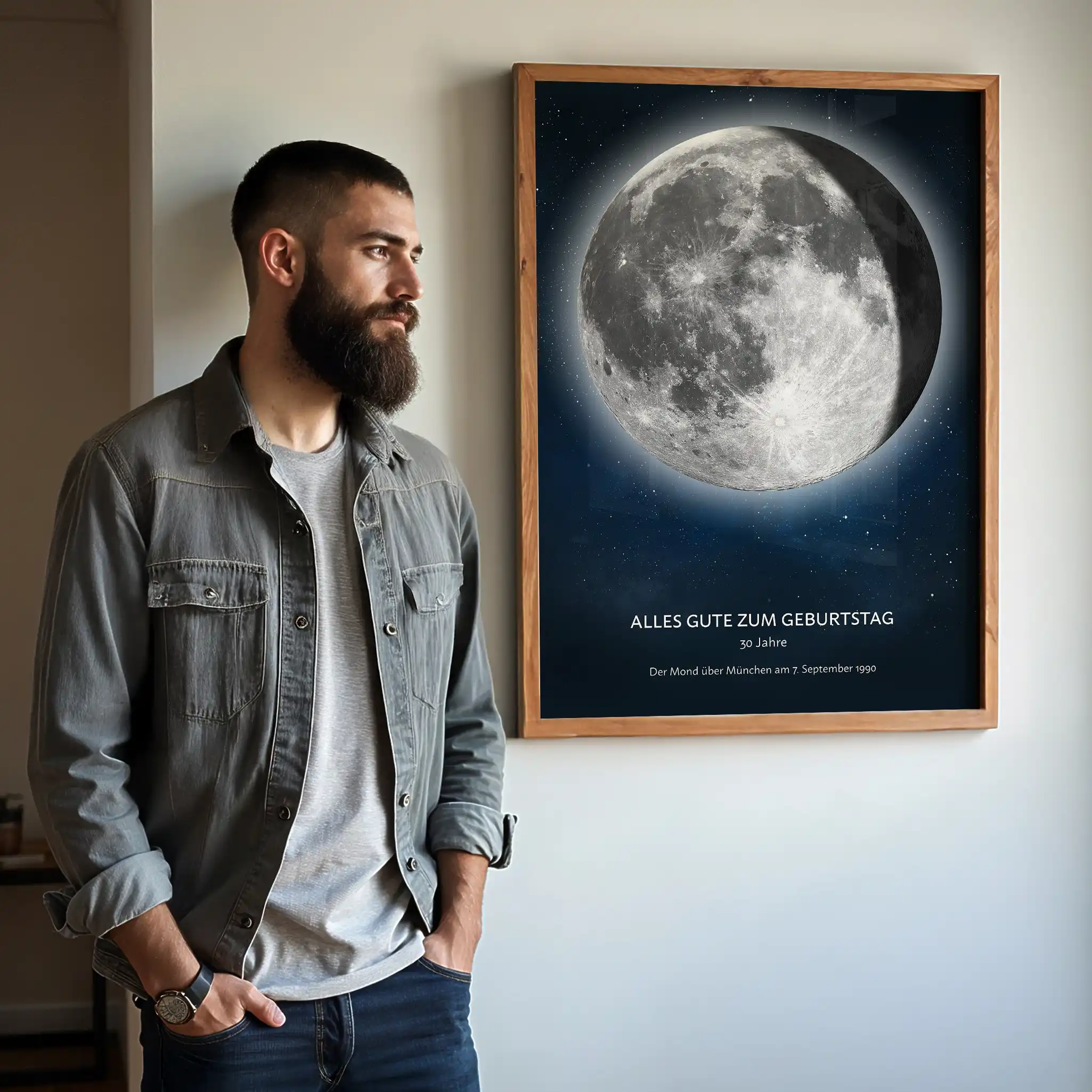 Stelle einen besonderen Moment nach, indem du die Mondphase an deinem Geburtsdatum abbildest