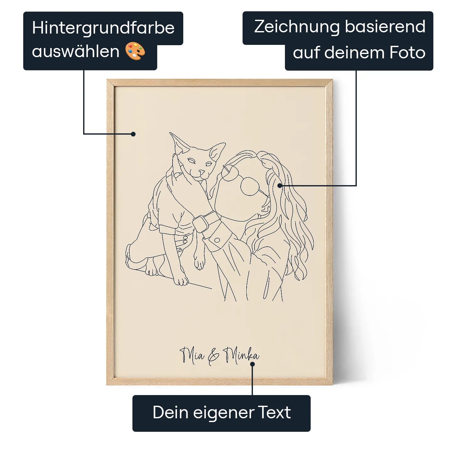 Halte die besondere Bindung zu deiner Katze fest, indem du ein Lieblingsfoto in ein minimalistisches Strichzeichnungsporträt verwandelst