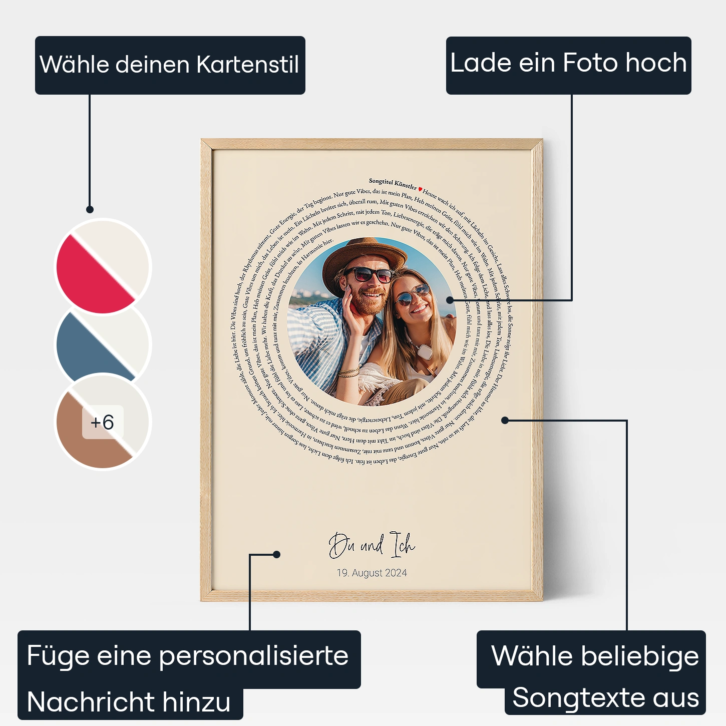- Personalisiere mit Songtexten oder einem individuellen Text