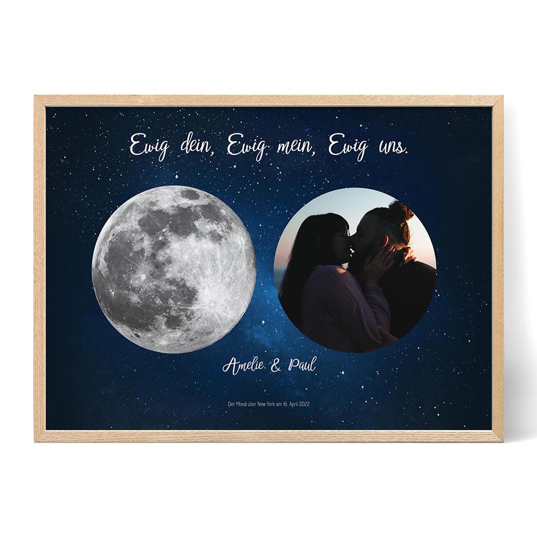 Warte nicht – mache aus diesem unvergesslichen ersten Date ein atemberaubendes Kunstwerk, das du und dein Partner für immer schätzen werdet.. Bestelle jetzt dein personalisiertes Poster „Unser erstes Date Mond mit Foto“ und mache ein Geschenk, das wirklich nicht von dieser Welt ist.