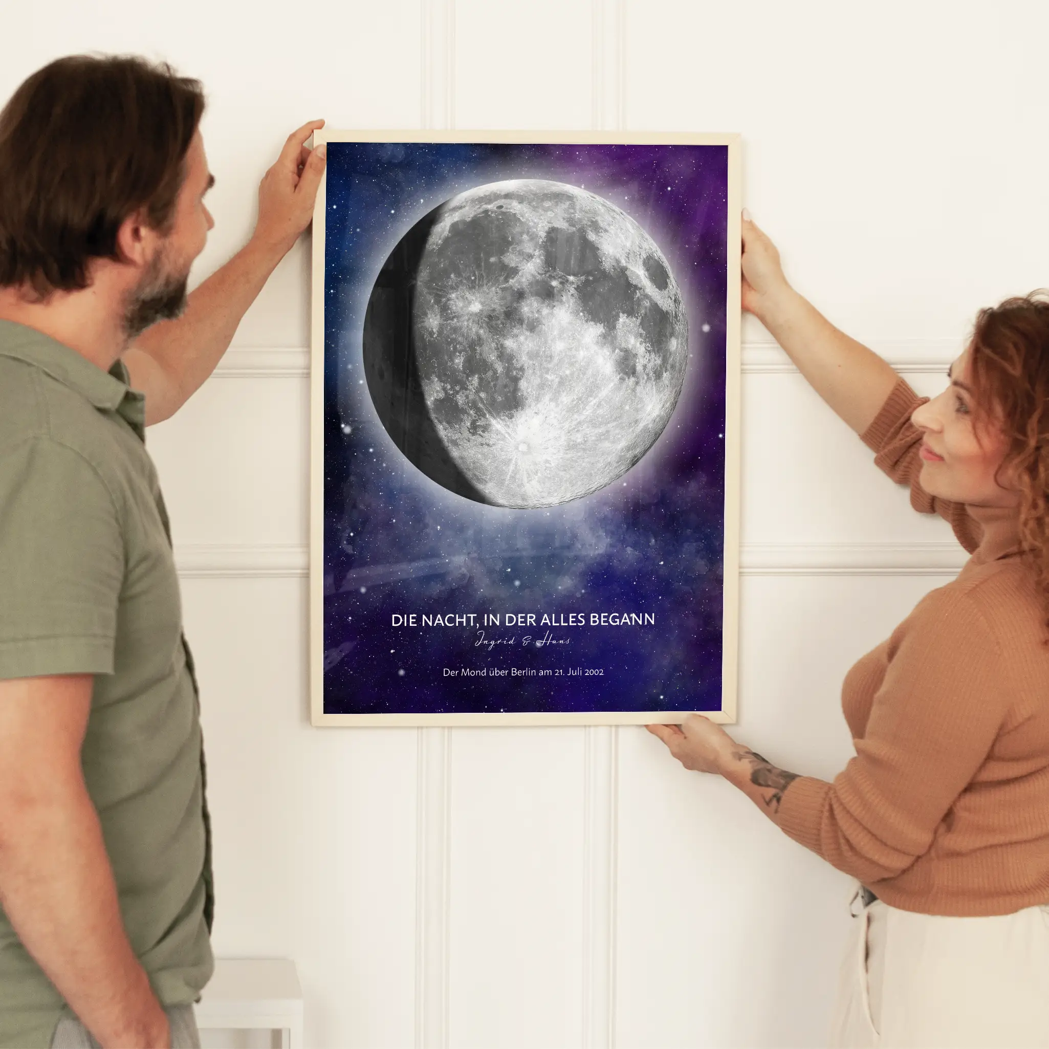 Lass die magische Zeit einer Nacht, jedes Mal, wenn du dein Mondposter betrachten wirst, neu erblicken. Beginne noch heute mit der Erstellung deines Drucks und überrasche deine Liebsten mit einem Geschenk, das nur für sie angefertigt wurde.