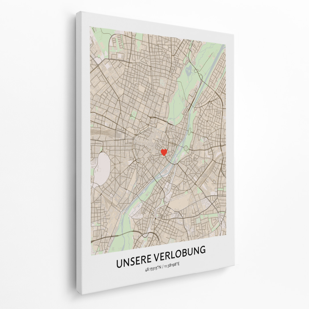 Du suchst ein einzigartiges und herzliches Geschenk für ein verlobtes Paar? Unsere Verlobungskarte auf Leinwand ist die perfekte Wahl. Hebe den besonderen Ort, an dem der Heiratsantrag stattfand, mit einer wunderschönen, personalisierten Karte hervor.