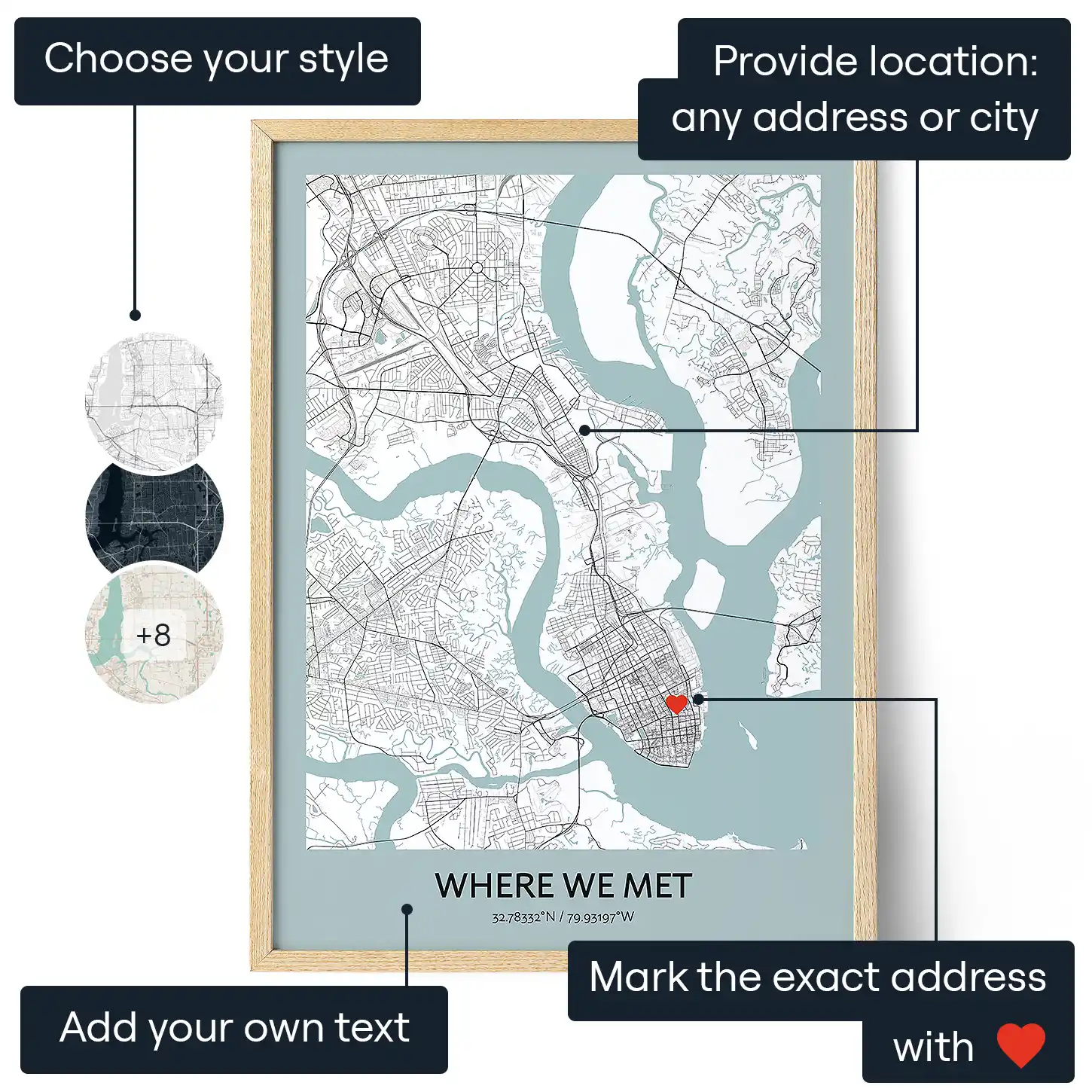 Capture the moment you and your love met with a personalised map of the exact location