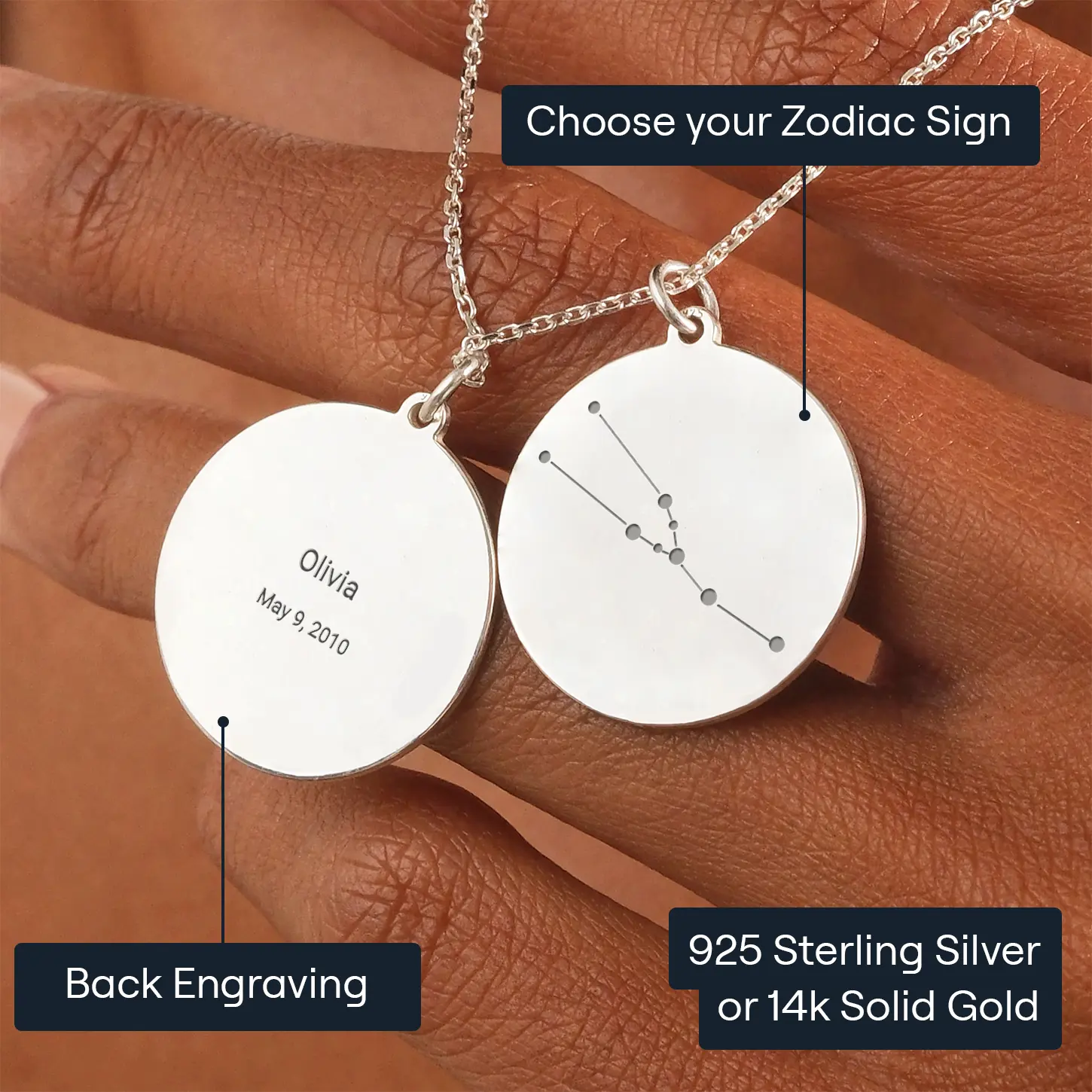 Our Custom Modern Zodiac Jewelry offers a contemporary take on traditional zodiac symbols. With our user-friendly online editor, you can choose your zodiac sign or search by date to find the modern zodiac illustration that speaks to you.