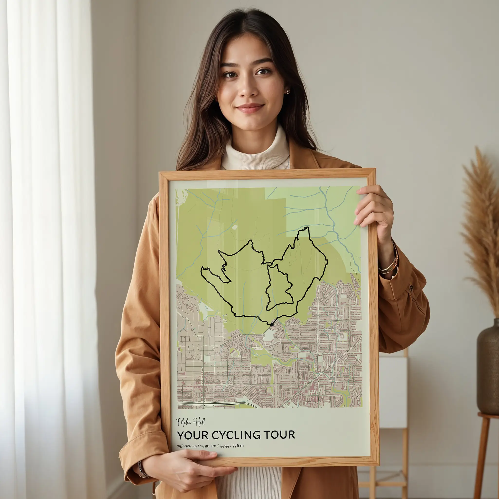 Transform your favourite ride into a personalized cycling route map poster, a meaningful gift for cyclists who want to celebrate their best and most unforgettable miles