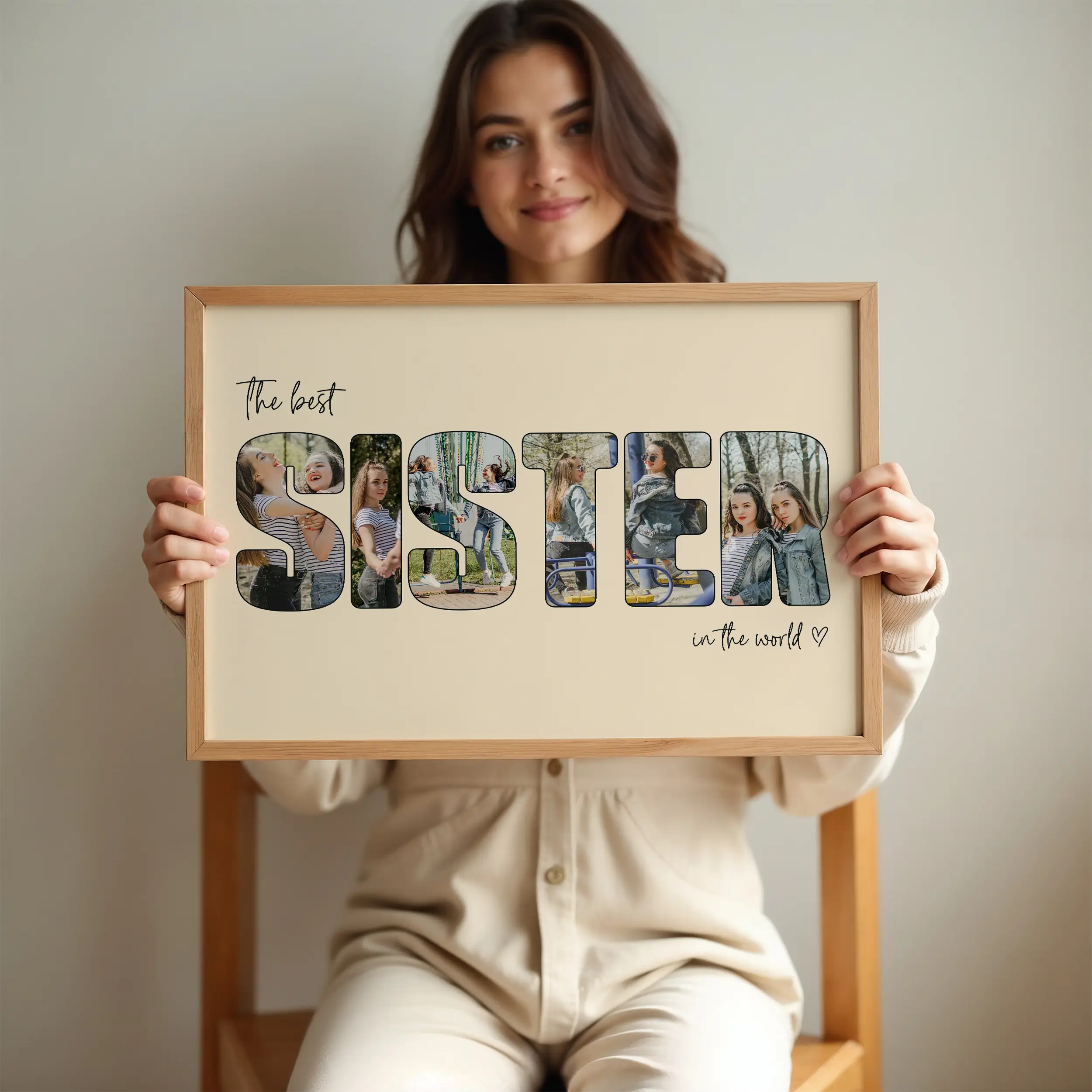 Sisters are often the closest bonds people share in their lives and deserve nothing but the best. So why not create a memorable and unbelievably unique piece of art with the Sister Letter Photo Collage? It will make your sister feel special and loved. Therefore, order a Sister Letter Photo Collage today, and give the perfect gift that will last forever.