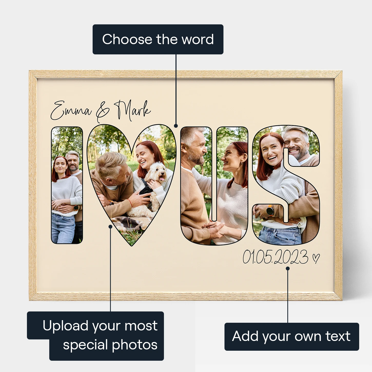 - Upload your favourite photos to personalize each letter