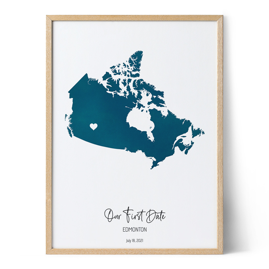 Capture the essence of your unique love story with our Watercolor Our First Date Map. With the creative freedom to choose from predefined watercolor styles or customize your color scheme, you can make your map truly yours. Add a burst of nostalgia by including the date of your first encounter beneath the map. Highlight the country, state, or city where your first date took place and pinpoint it with a heart-shaped marker.