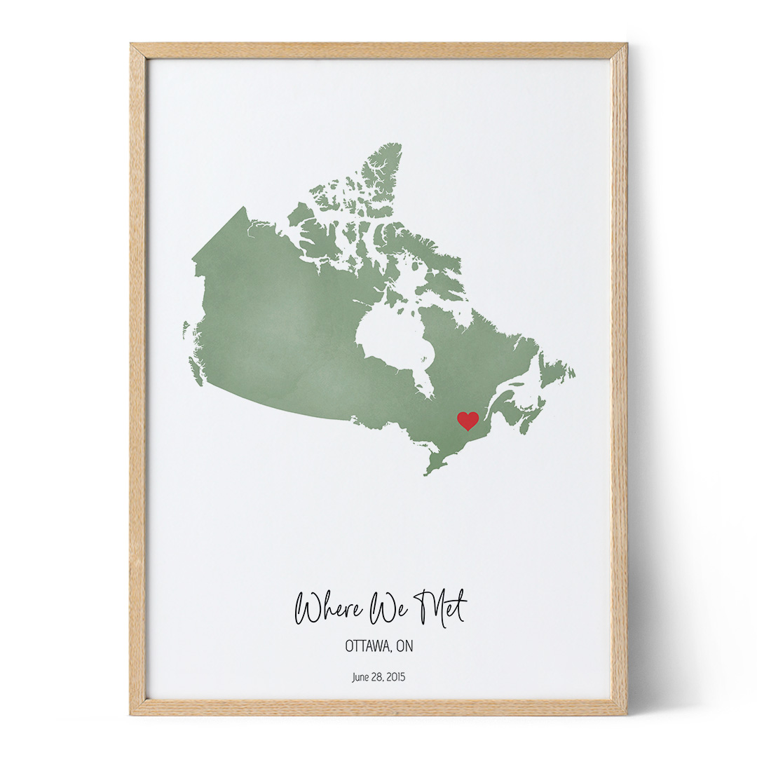 Elevate your gifting game with our Watercolor Where We Met Map. You have the creative freedom to design a map that resonates with your personal journey. Start by choosing from our stunning watercolor styles or craft your unique color scheme to match your taste. Next, select the country, state, or city where your paths first crossed, and mark it with a heart-shaped pin.