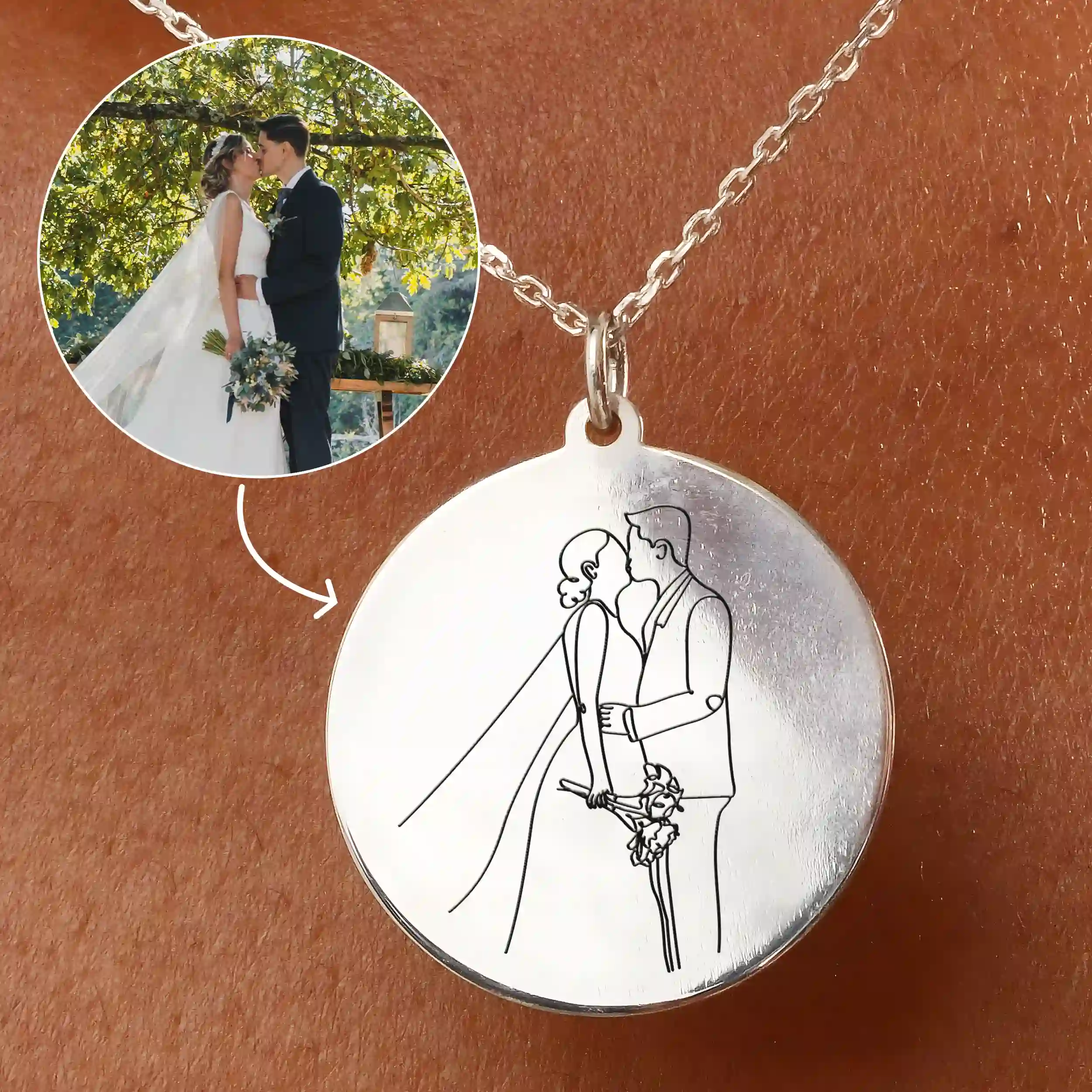 Searching for a unique and meaningful wedding gift? Our Wedding Line Art Jewelry is the perfect choice. Transform your cherished memories into a stunning pendant with a hand-drawn line art illustration based on your own photo.