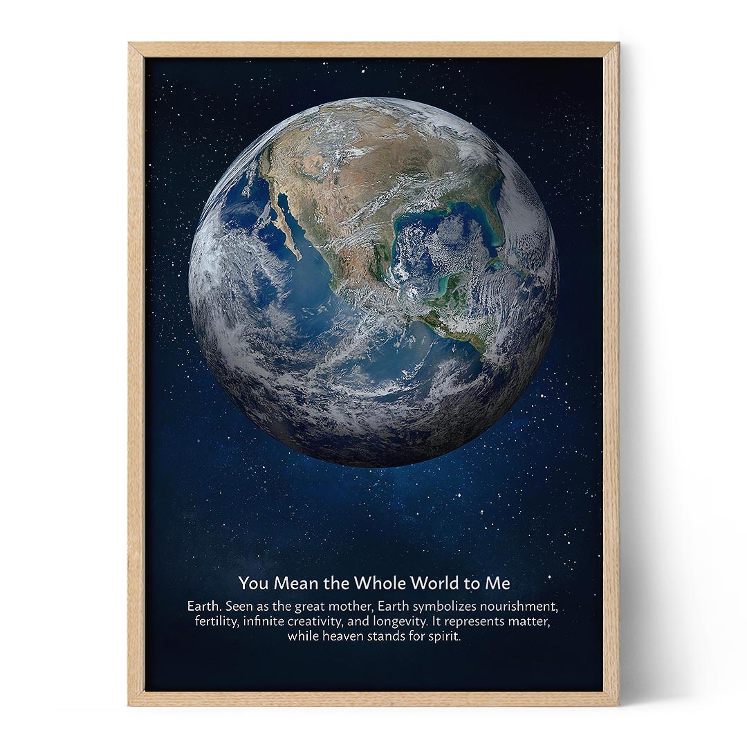 Celebrate the special place your loved one holds in your life with this personalised artwork. The "You Mean the Whole World to Me" print is more than just a gift; it's a heartfelt declaration of your love and appreciation, perfectly encapsulated in a stunning piece of art.