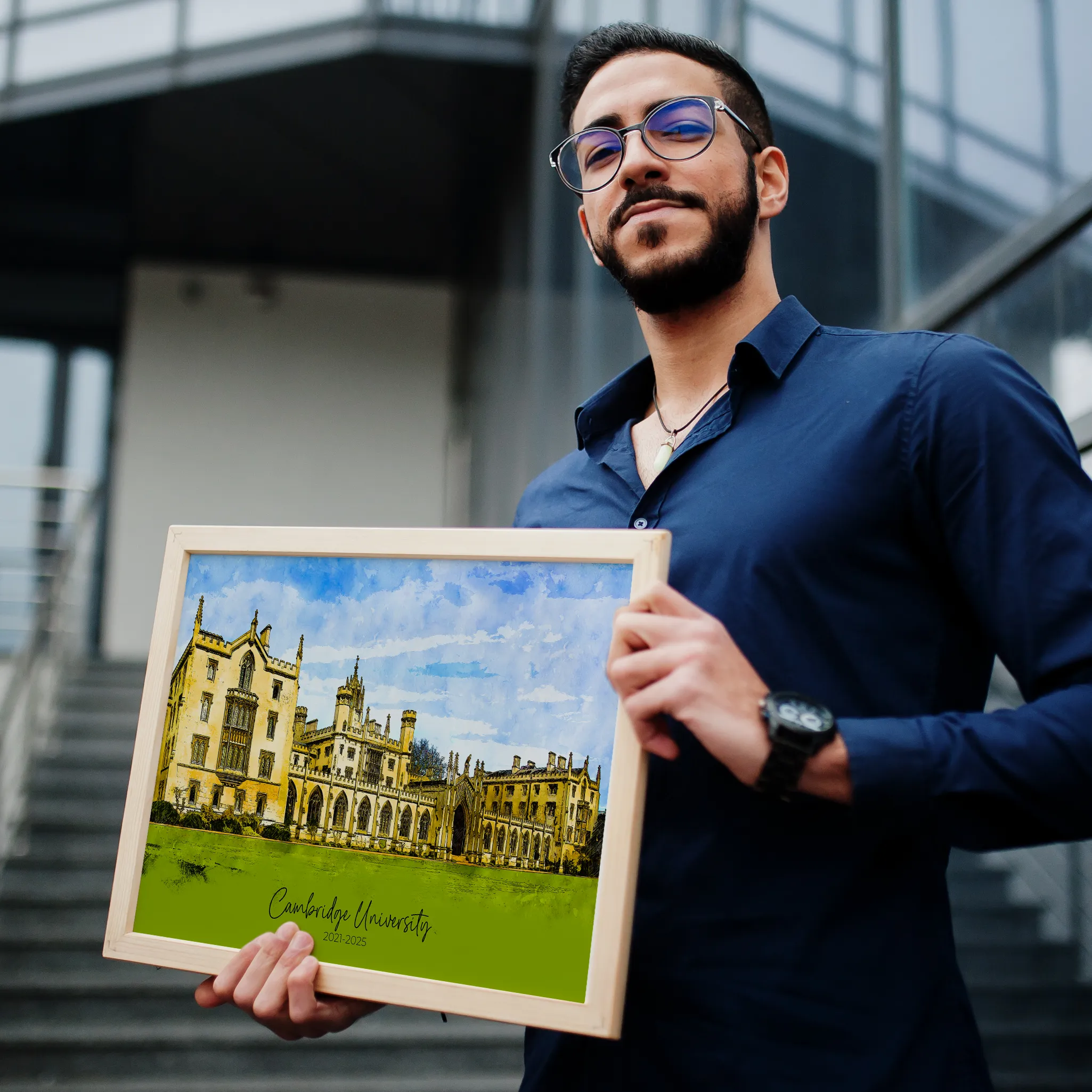 Turn a photo of your university into a unique digital watercolour portrait. The perfect personalised gift for alumni, students, or professors!