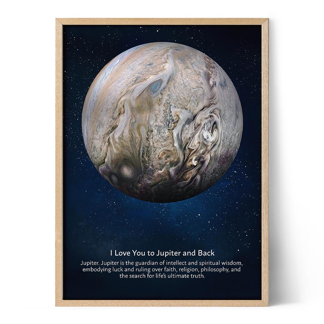 Celebrate the special place your loved one holds in your life with this personalised artwork. The "I Love You to Jupiter and Back" print is more than just a gift; it's a heartfelt declaration of your love and appreciation, perfectly encapsulated in a stunning piece of art.