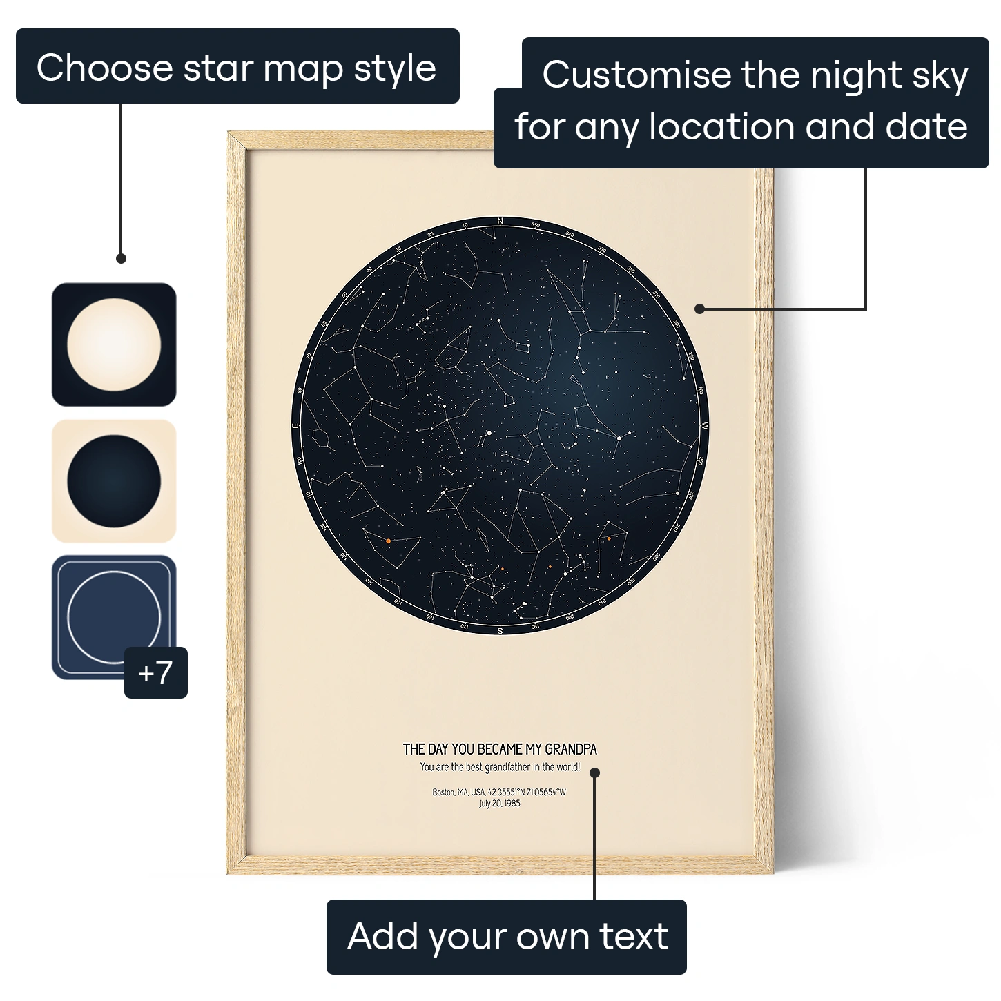 Cherish the magical moment of becoming a grandpa with a custom star map and treasure the memory for years to come