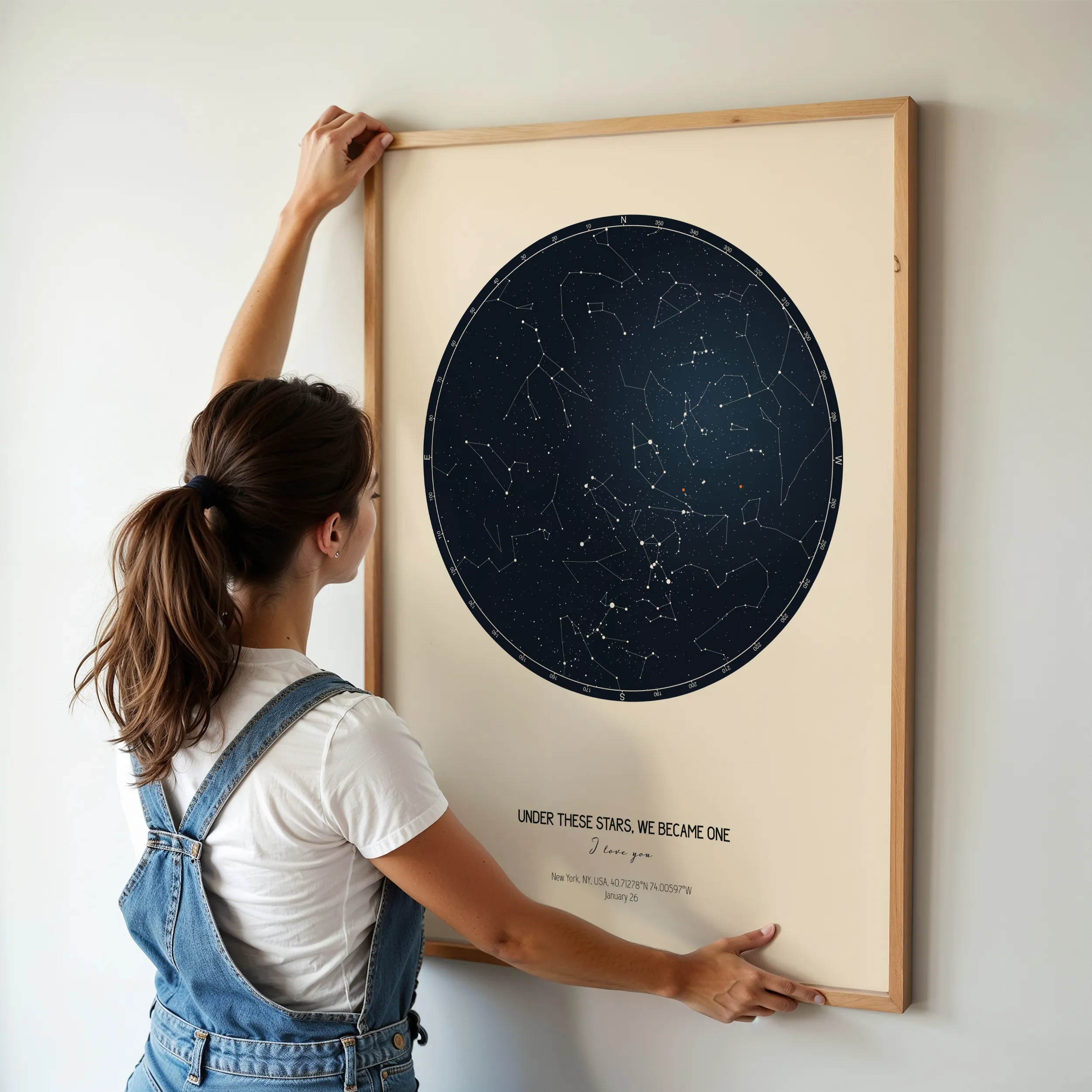 - Relive a magical moment with a unique star map of a specific date and location, capturing the alignment of the stars just for you