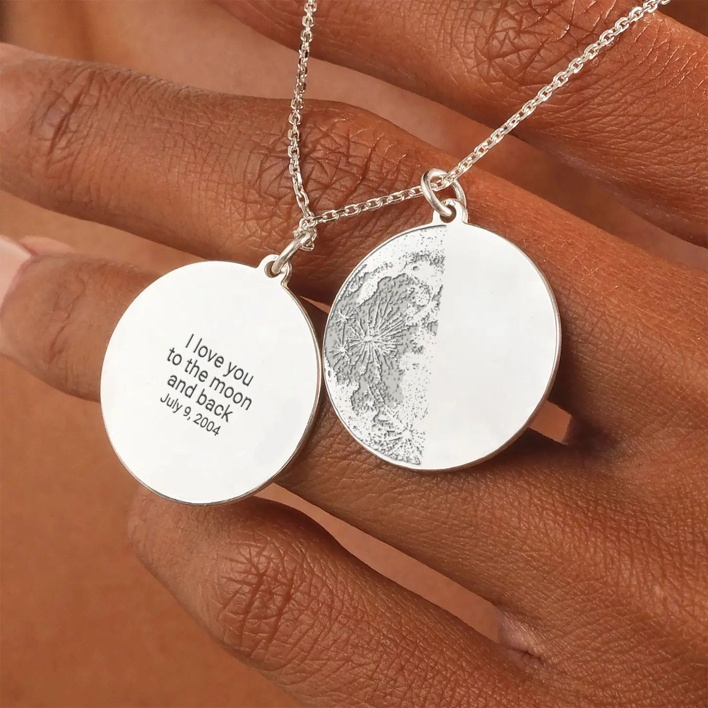 Our Last Quarter Moon Jewellery allows you to create a one-of-a-kind pendant that tells your unique story. Using our online editor, simply enter the exact time and date of your special moment. Whether it's the day you met your soulmate, the date of your wedding, or any other memorable occasion, we'll capture the last quarter moon phase from that precise moment.