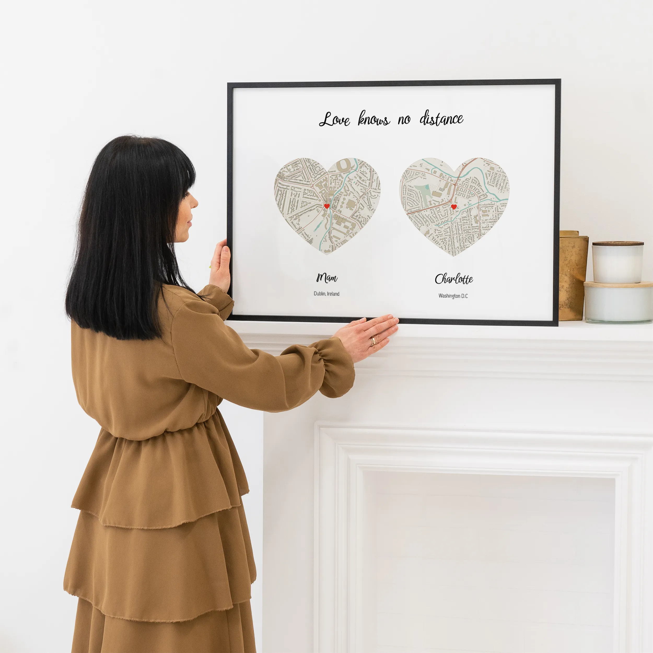 Your Mum will be delighted to receive a personalized Love Knows No Distance Map for Mum, and she'll be reminded of your love and connection every time she looks at it. This thoughtfully crafted gift celebrates the bond that you share, even when life pulls you apart. It's a powerful way to show your Mum just how much she means to you, and let her know that no matter what the distance, your love is unending.