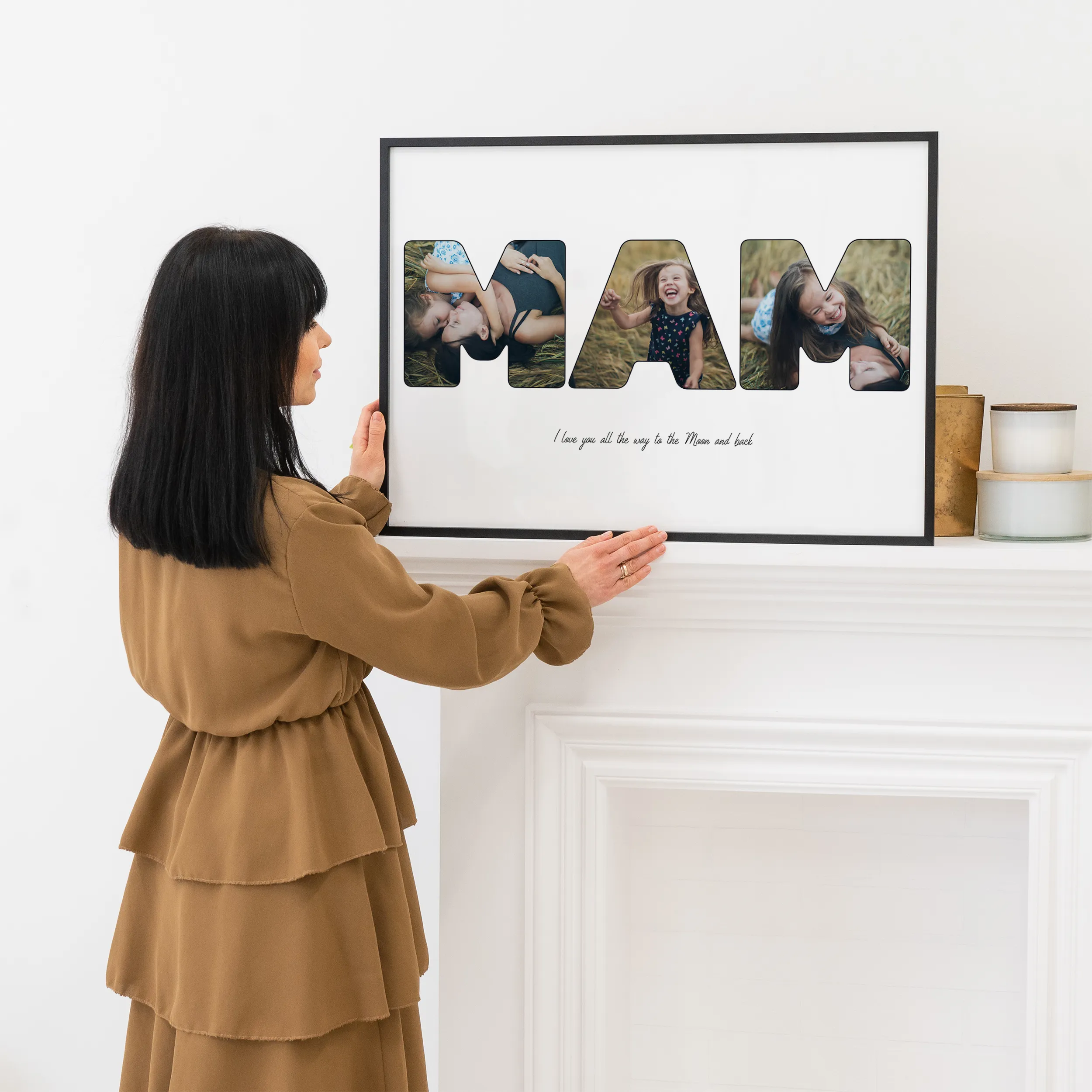 The process is simple and straightforward. To create your own Mam Letter Photo Collage, simply head to our online editor and upload photos for each letter. You can choose between different print formats including posters, canvas or framed prints or download the digital version of the collage. The process is quick and easy, and you can customize the design to match your preferences.