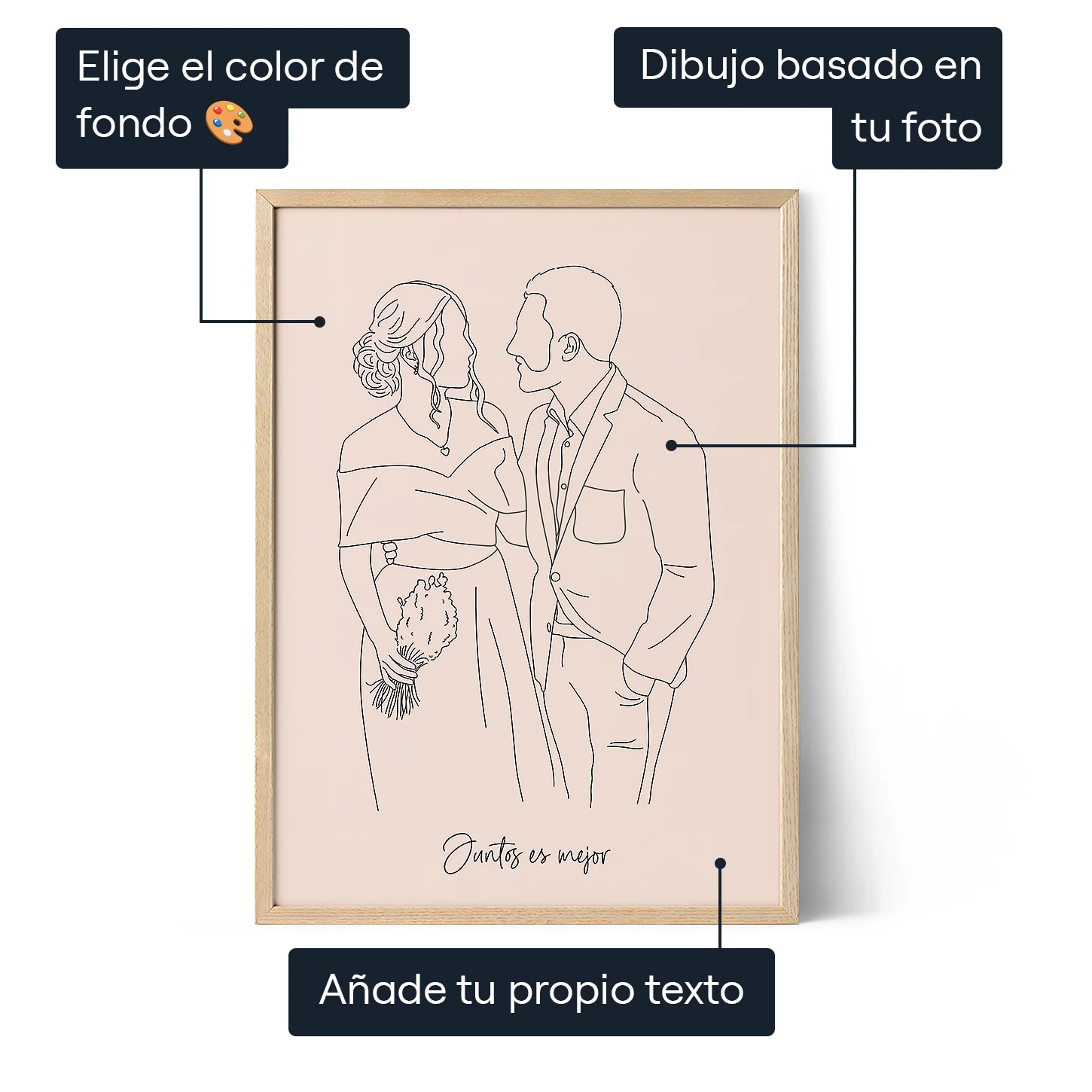 4. Comparte una foto que encierre la magia de vuestra unión. Nuestra Los artistas dibujarán meticulosamente a mano la obra de arte, asegurándose de que refleje el romanticismo de tu día especial.