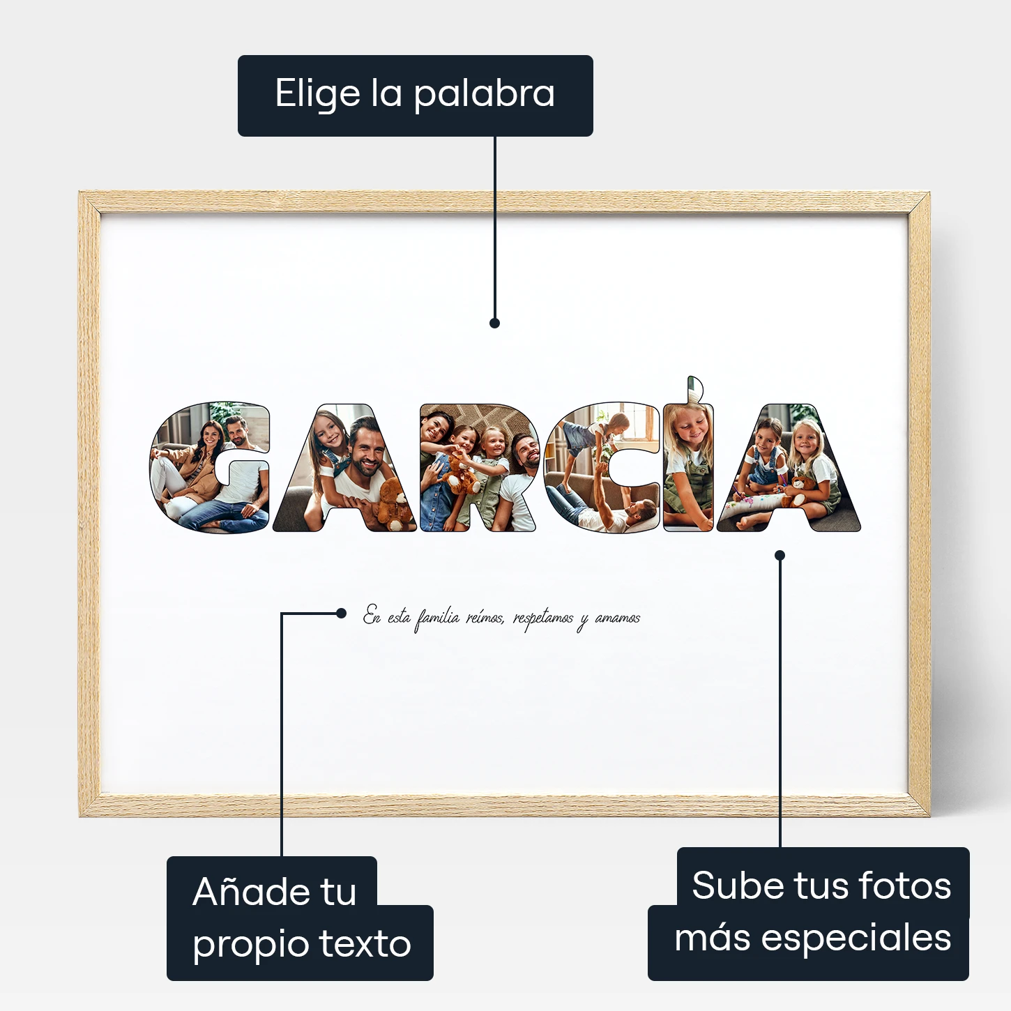 Personalizado y Único: Collage de fotos con el nombre de la familia