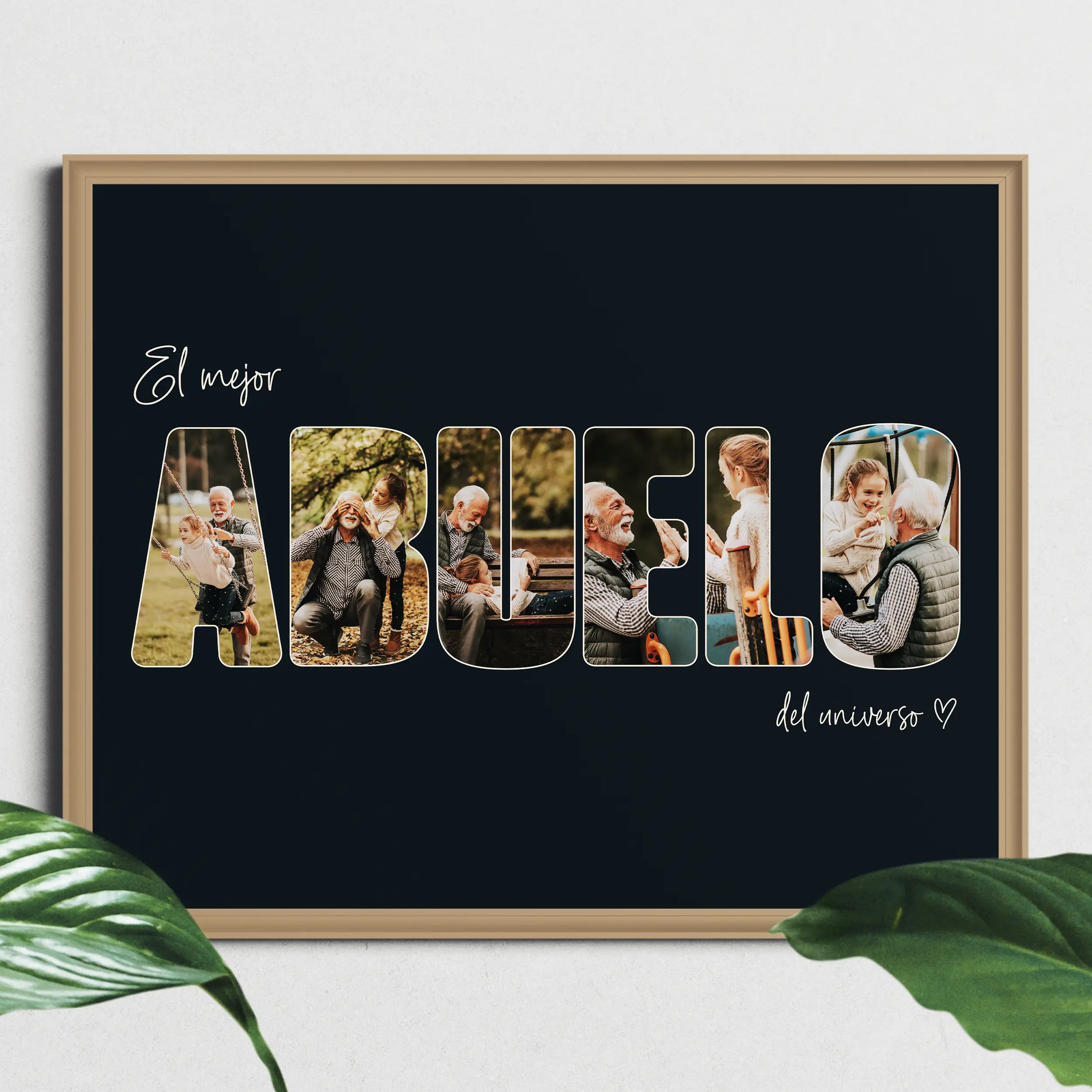 No hay nada como el vínculo especial que comparten un abuelo y sus nietos. Celebra esta relación con el collage fotográfico de letras para el abuelo de Positive Prints: un regalo personalizado que tu abuelo podrá atesorar para siempre. Usa tus fotos favoritas y colócalas en cada una de las letras de la palabra “abuelo”, o si lo prefieres, puedes personalizar la palabra para que diga el nombre o el apodo de tu abuelo, como “abue” o incluso “papá”.