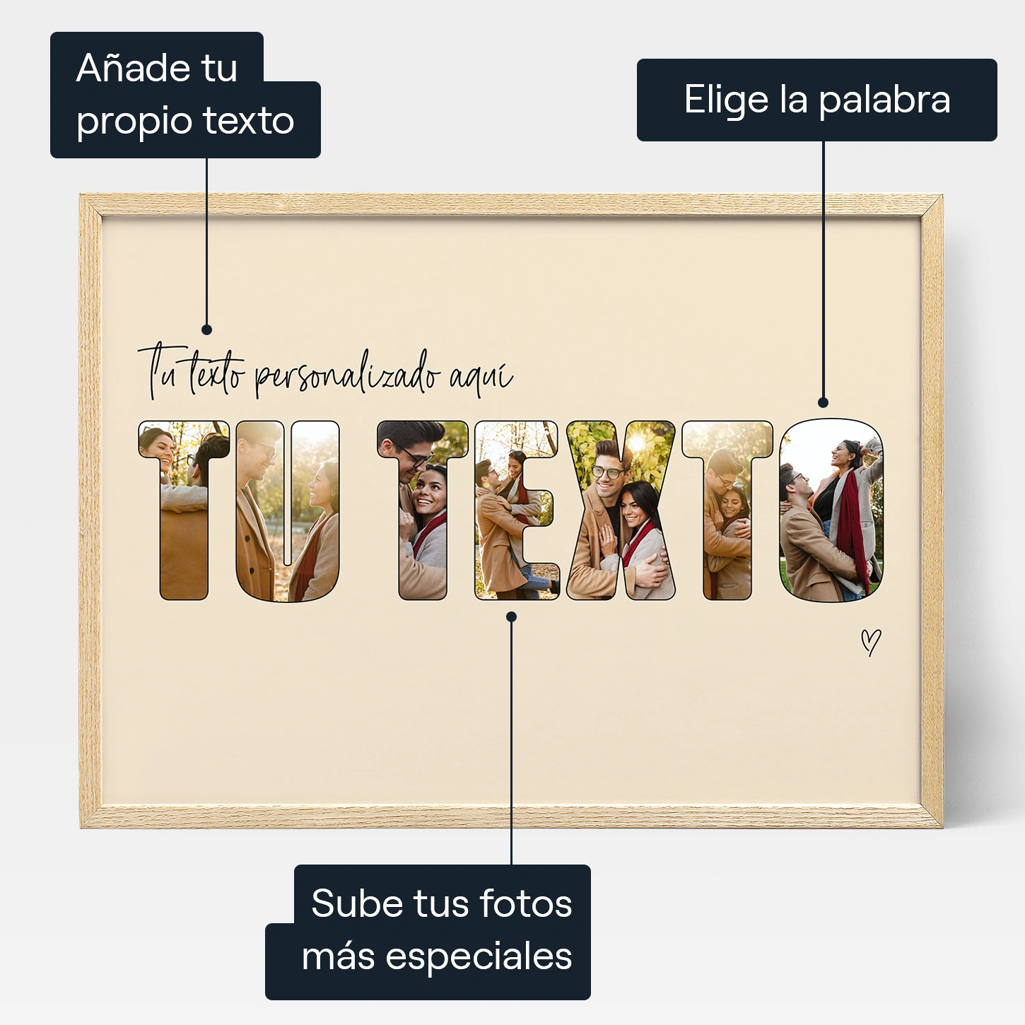 - Sube tus fotos favoritas y personaliza cada letra