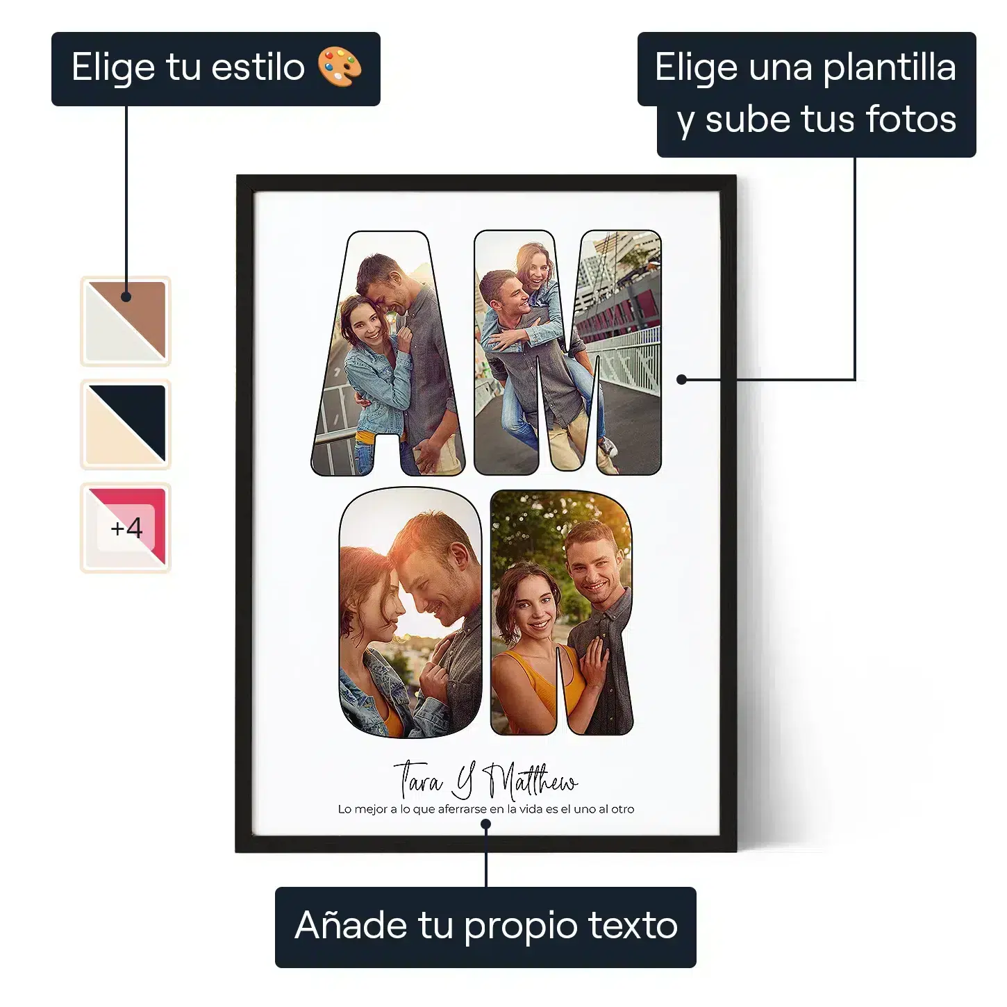 Convierte tus memorias favoritas en un bonito collage con forma de letras o números con fotos. Diseñados con cariño e impresos en póster premium o lienzo de la mejor calidad