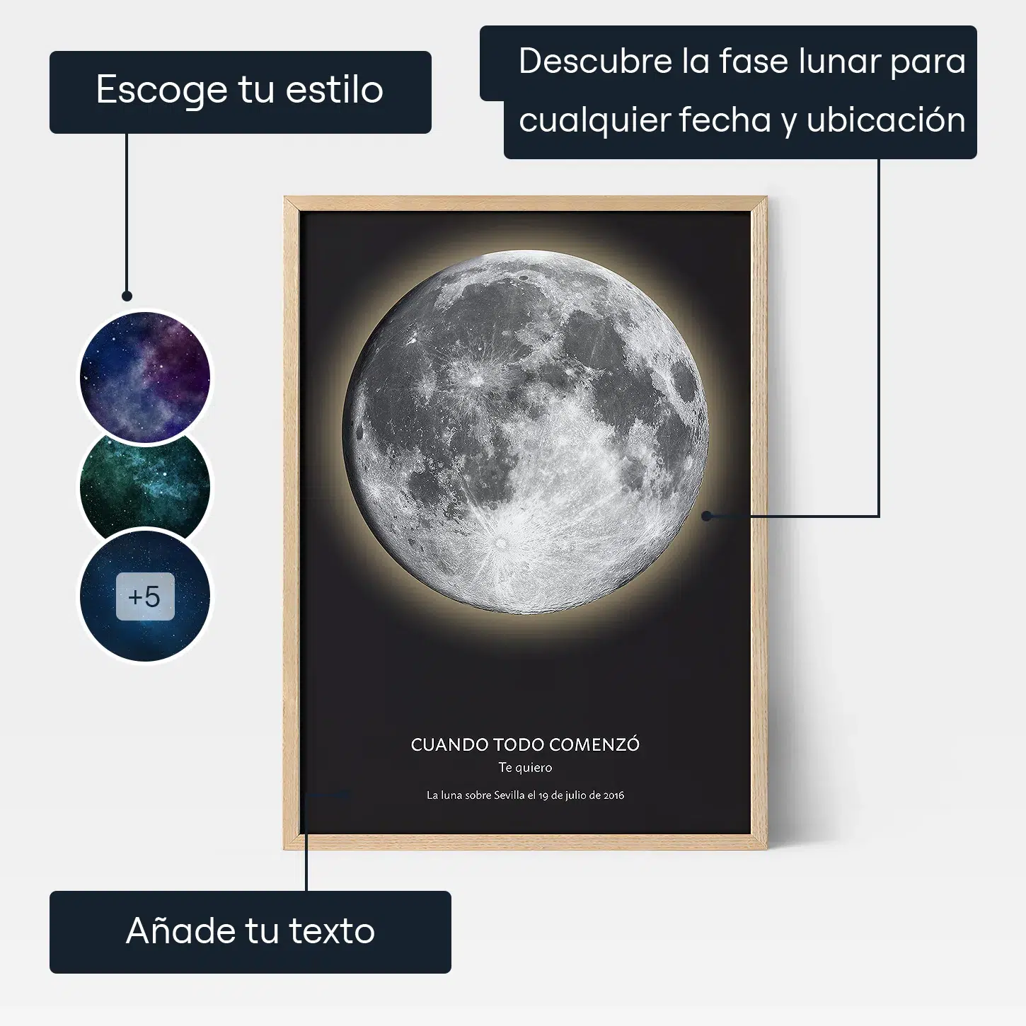 Cuadro de luna personalizado que guarda recuerdos de tus  noches favoritas. ¡Ahora puedes brindar homenaje a  tus momentos más brillantes y a tus mejores recuerdos bajo el cielo de ese día !