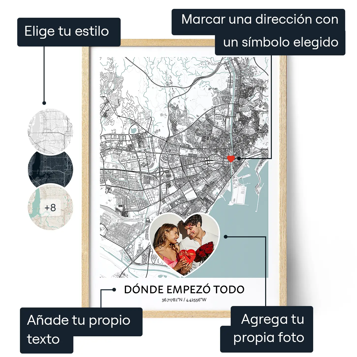 El Mapa Donde Todo Empezó con Foto es un regalo único y bonito  para aniversarios, cumpleaños, San Valentín, bodas o cualquier ocasión especial. Celebra vuestro viaje juntos haciendo un regalo que capte la esencia de vuestra relación.