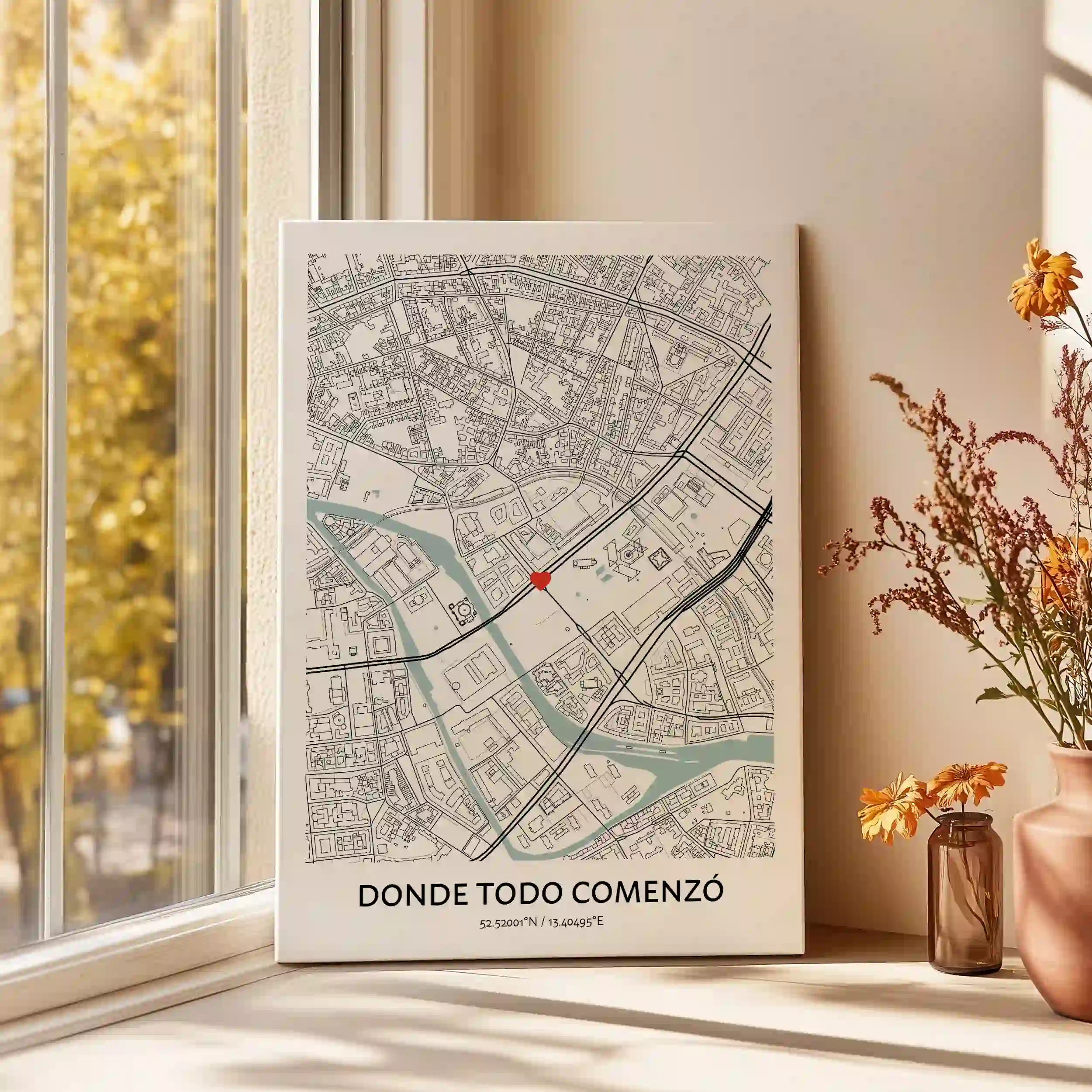 Haz un regalo que será apreciado para siempre. El lienzo mapa Donde Todo Comenzó sirve como tributo duradero al lugar especial donde comenzó vuestro viaje juntos, convirtiéndolo en un regalo creativo y significativo para cualquier ocasión.