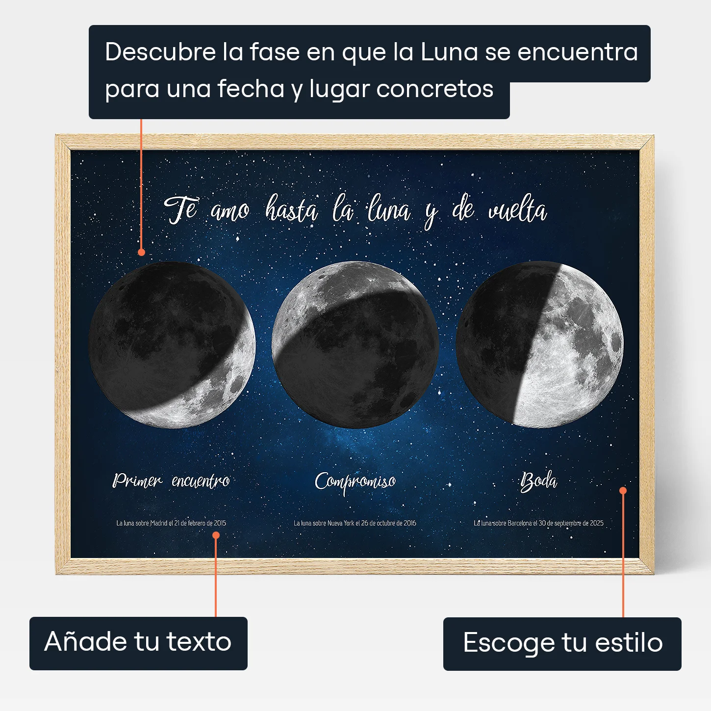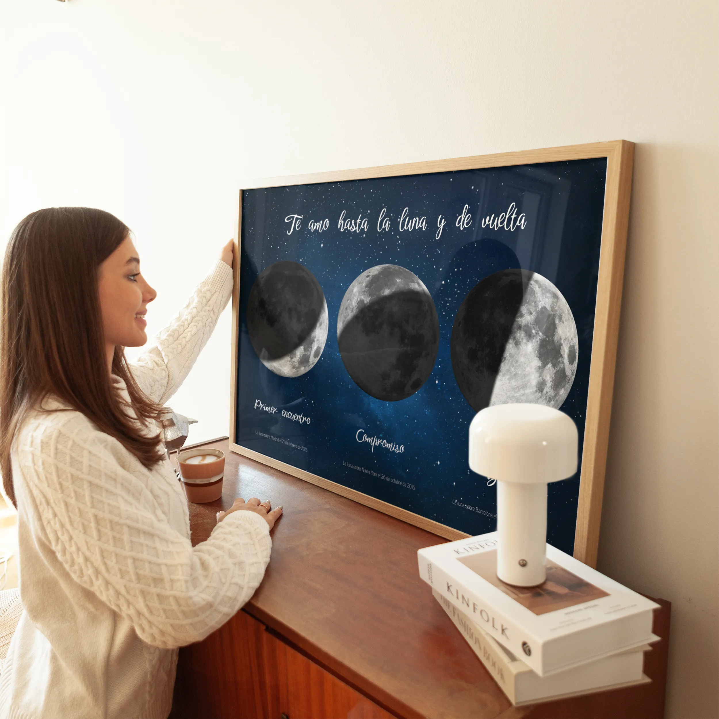Haz un regalo que será apreciado para siempre. El Póster Triple Luna es algo más que una impresión: es un homenaje duradero a tus momentos más preciados. Celebra vuestros vínculos especiales y crea un hermoso recuerdo del amor y los recuerdos que compartís con este creativo y significativo relicario.