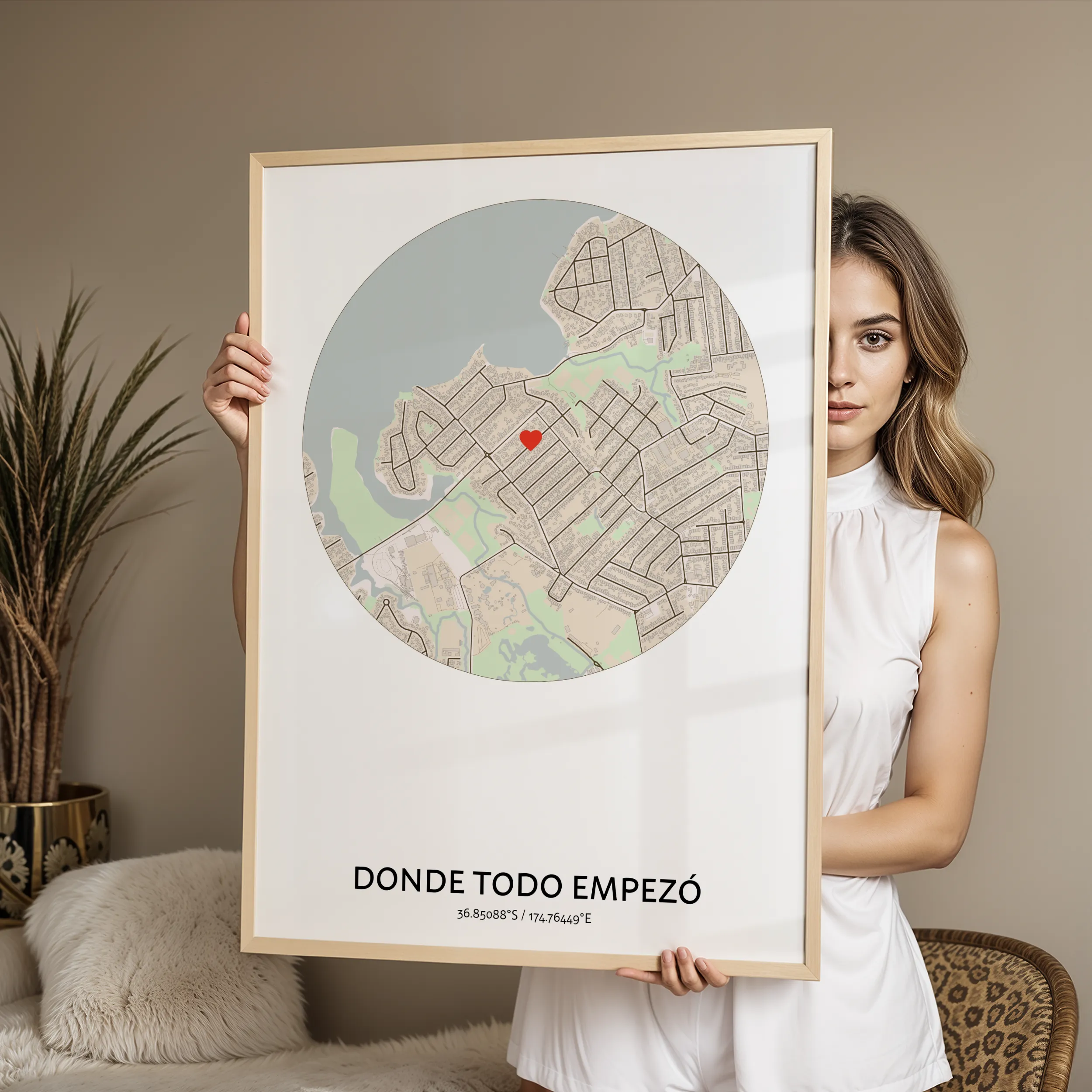 Si estás buscando un regalo que tenga tanto valor sentimental como un impacto visual, nuestras impresiones personalizadas son ideales para cualquier ocasión. Seguro que cualquiera que lo reciba lo apreciará y servirá como un preciado recuerdo en los años venideros. Ya sea que estés celebrando un momento importante en tu relación o solo deseas expresar cuánto significa para ti esa persona, un mapa circular que resalte el lugar donde se conocieron es la manera ideal de lograrlo.