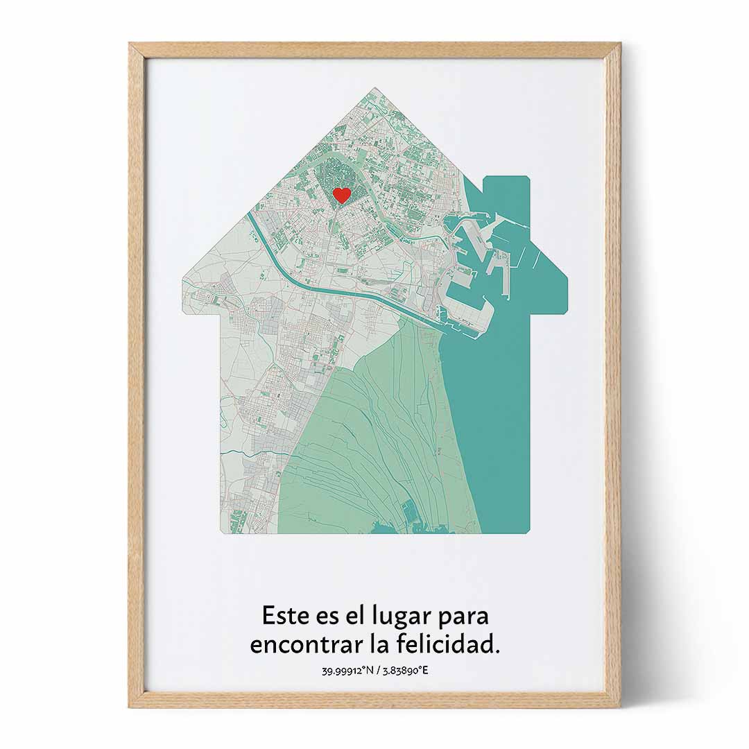 Si personalizar un mapa es muy fácil y divertido, ¡imagínate recrear la casa de tus padres! Elige el diseño de tu mapa, ingresa la ubicación que quieras marcar y el símbolo que quieras colocar. Si lo deseas, ¡también puedes escribir mensajes personales y frases célebres! Una vez que lo hayas personalizado por completo, podrás elegir el tamaño y formato de impresión. Puedes elegir entre un póster, un lienzo, una obra de arte enmarcada o un archivo de descarga que puedes imprimir en alguna imprenta cercana. Tienes tantas opciones para personalizar tu mapa que puedes crear algo verdaderamente único y significativo que sin duda apreciarán por siempre.