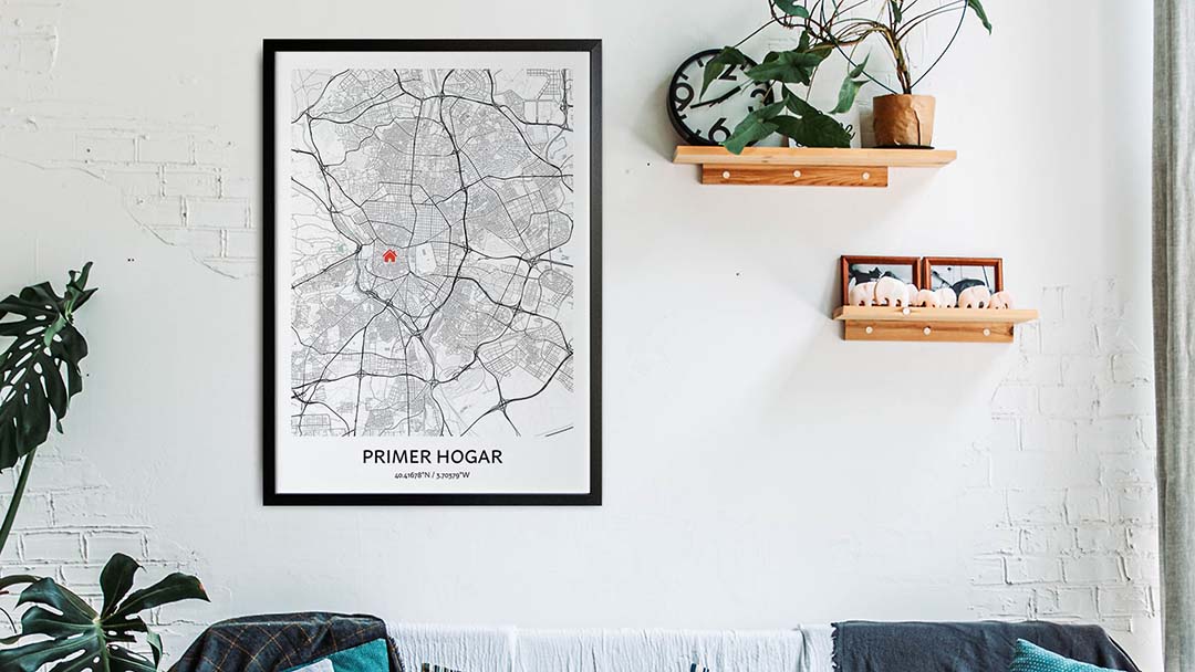 Un hogar es el lugar donde vive tu corazón, y no existe mejor manera de recordar por siempre los momentos vividos en tu primer hogar que con un mapa personalizado.