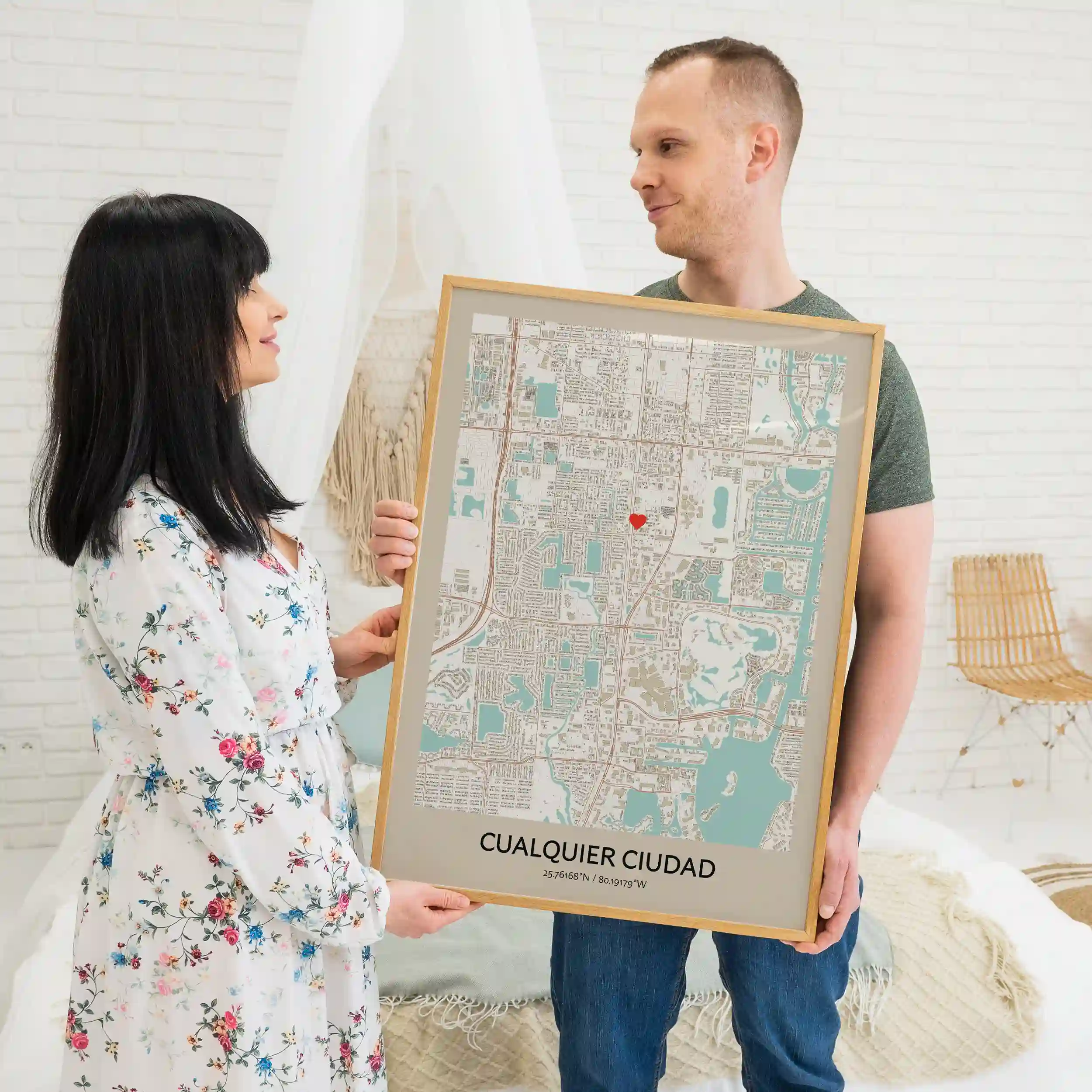 Nada llama más la atención que un mapa en tamaño póster decorando tu pared. Ahora puedes crear un mapa de tu ciudad favorita de cualquier lugar del mundo. Nuestro editor de mapas te ofrece todas las herramientas para personalizar tu mapa con la forma que más te guste (incluso hay forma de corazón), diseño, lugar y marcadores. Adquiere tu mapa de ciudad personalizado y recíbelo como un póster, una almohada o en formato digital descargable.