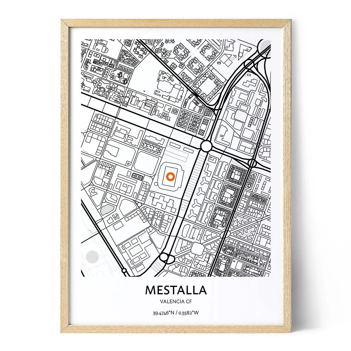 Nuestro mapa del Estadio Mestalla está impreso en papel de alta calidad, asegurando colores vibrantes y detalles nítidos. El mapa incluye coordenadas precisas y un diseño moderno y elegante que destaca la ubicación del estadio en Valencia. Disponible en varios tamaños, es ideal para cualquier espacio, desde tu sala de estar hasta tu oficina.