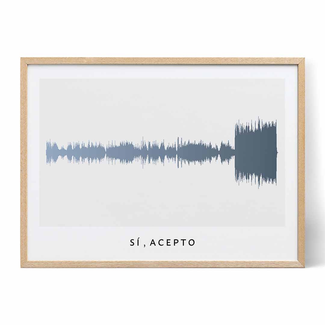 El “sí, acepto” de tu pareja fue música mágica para tus oídos. Atesora ese momento atemporal con una obra de arte con ondas sonoras del “sí, acepto”.