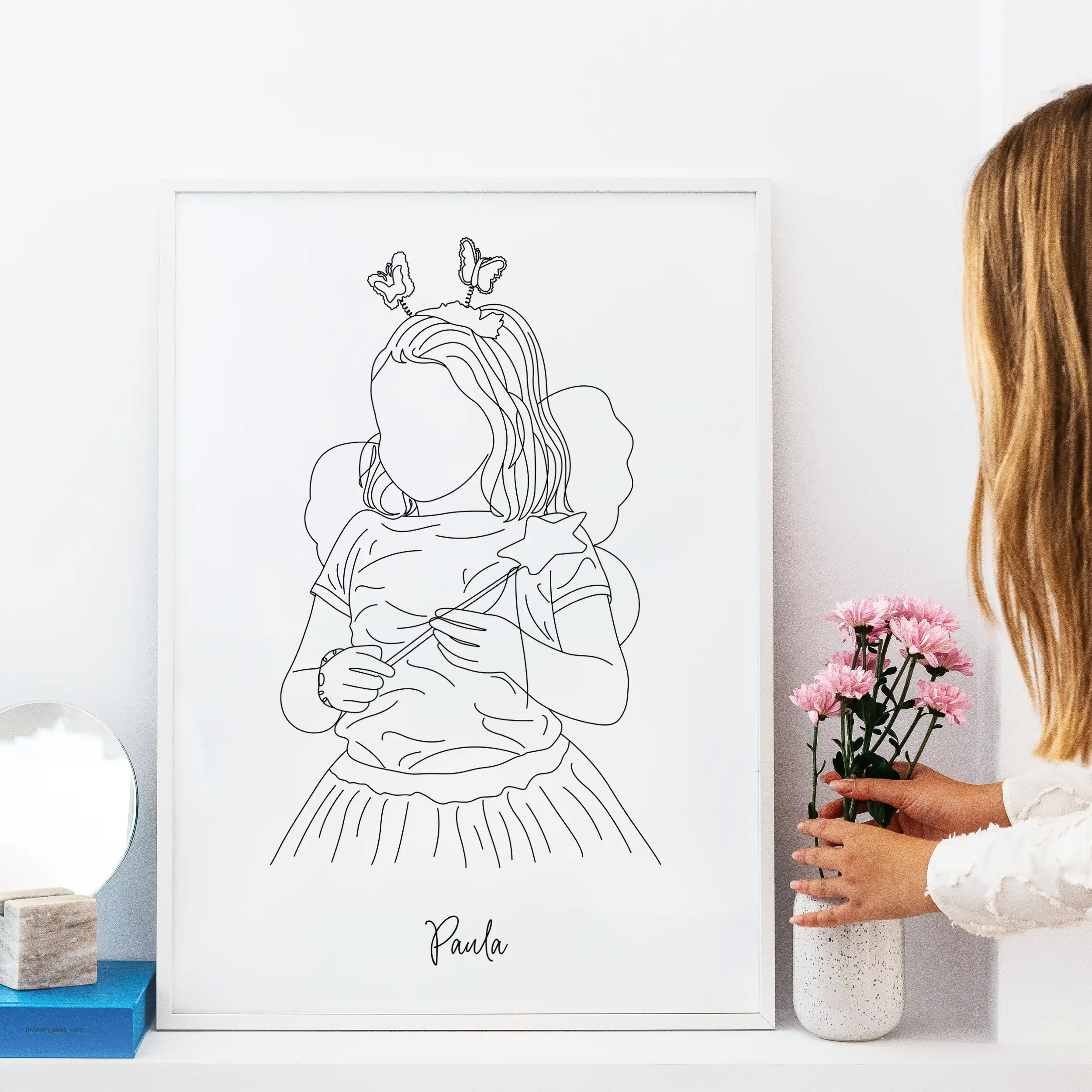 Retrato de Niña - Póster de Arte Lineal personalizado a partir de foto