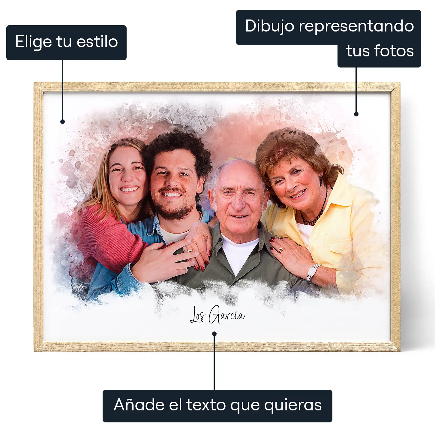 Convierte varias fotos en un bonito retrato familiar personalizado, impreso en póster o lienzo de la mejor calidad. Un regalo personalizado, emotivo y único para cualquier familiar